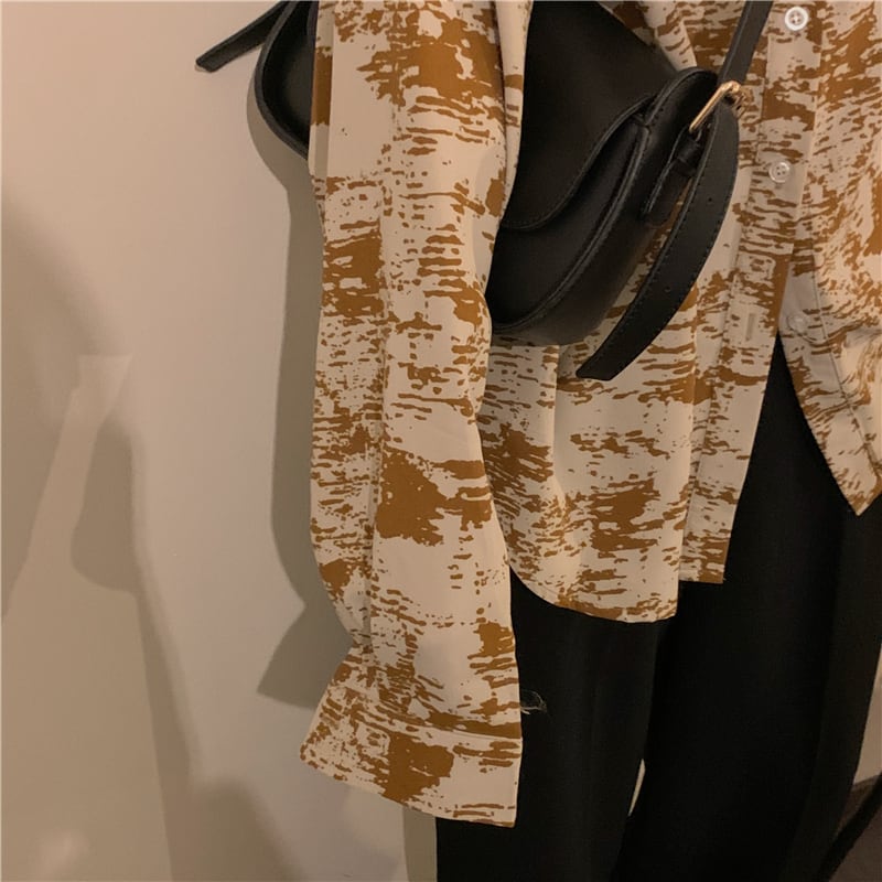 ルーズシャツ スプリングスタンダードパターンシフォン ロング レトロ 春物 kumikum71778674631