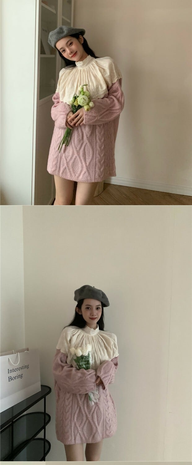 レースセーター レディースウィンタールーズニットトップス ロング 冬物 ステッチ kumikum21127310713