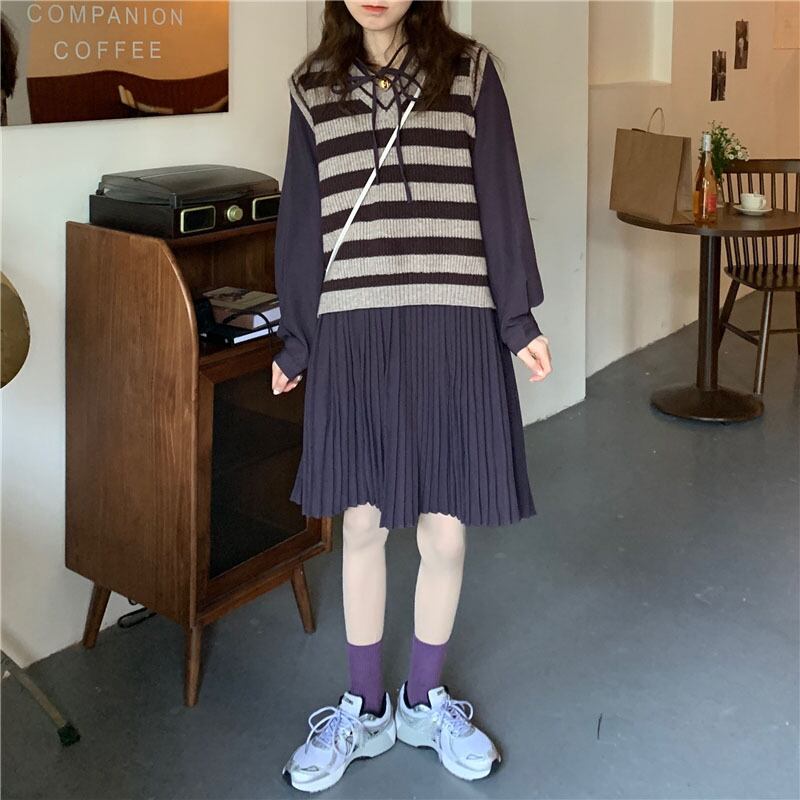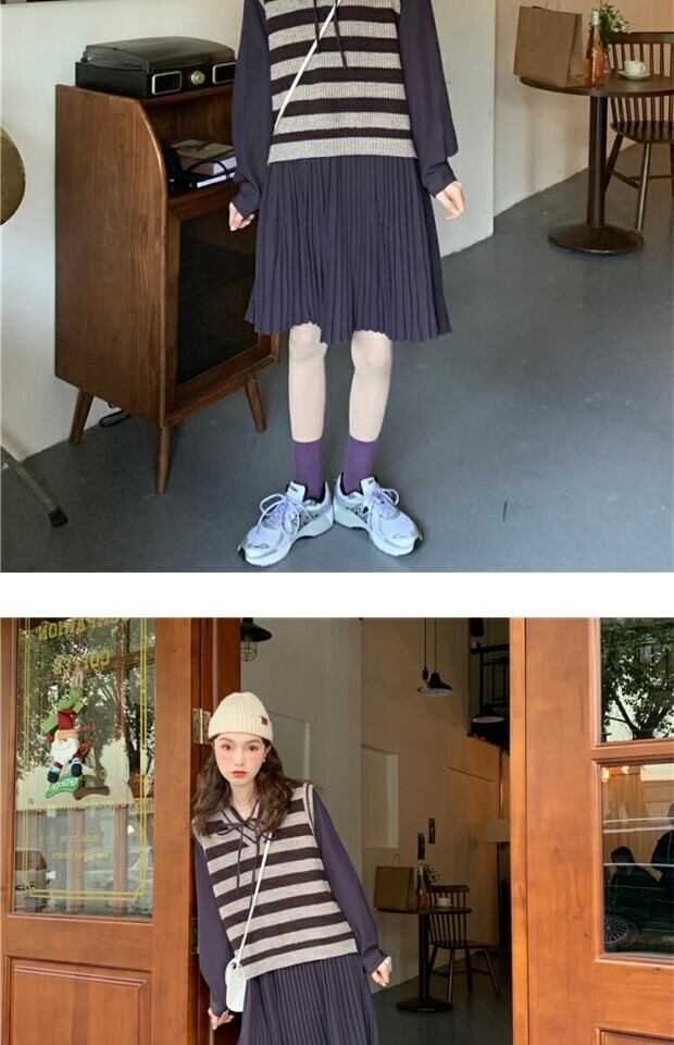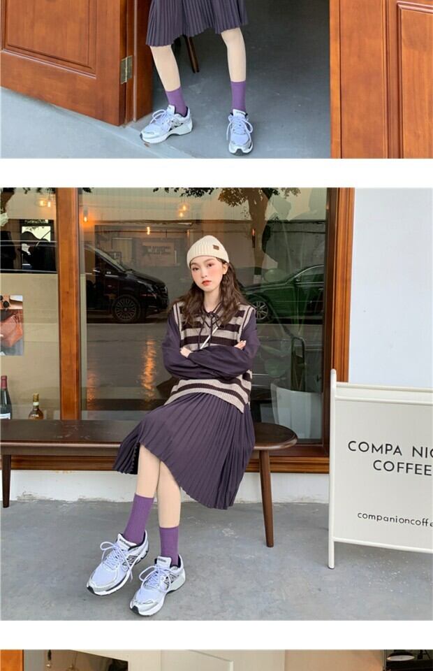 色:ニットベスト,コーヒー色のドレス,紫のドレス