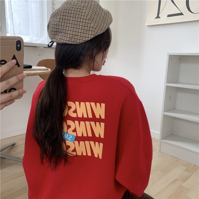 プリントベルベットセーター レディーススプリングルーズフードトップス レッド 春物 kumikum33854265668