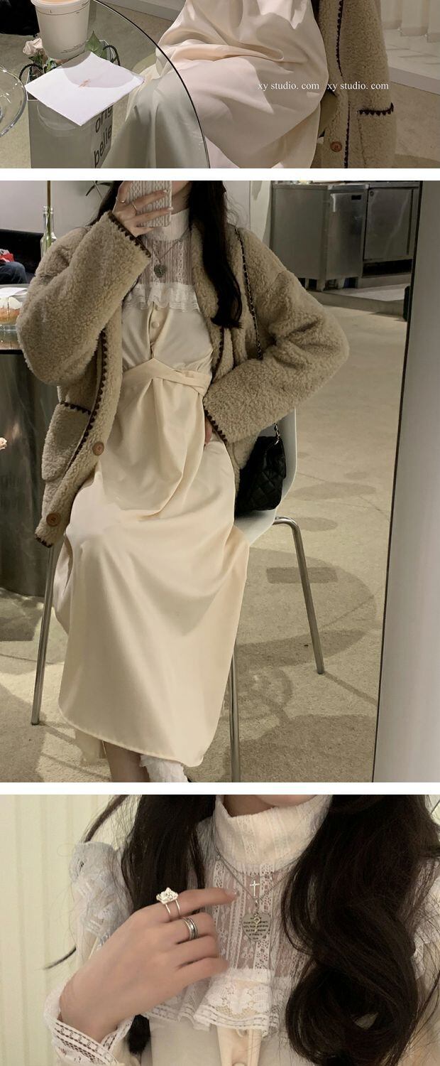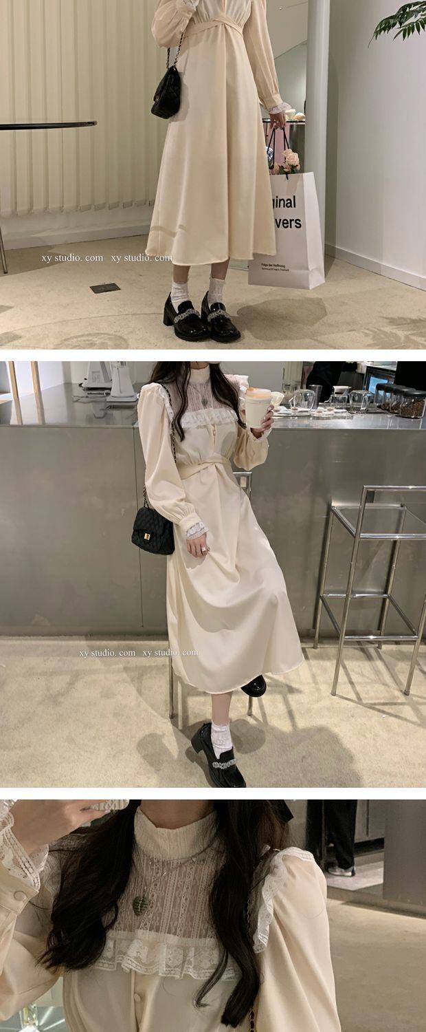 スタイルレースウェストスカート ウィンターAラインドレス ロング 冬物 ステッチ kumikum60624597834
