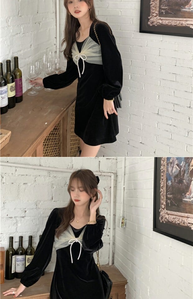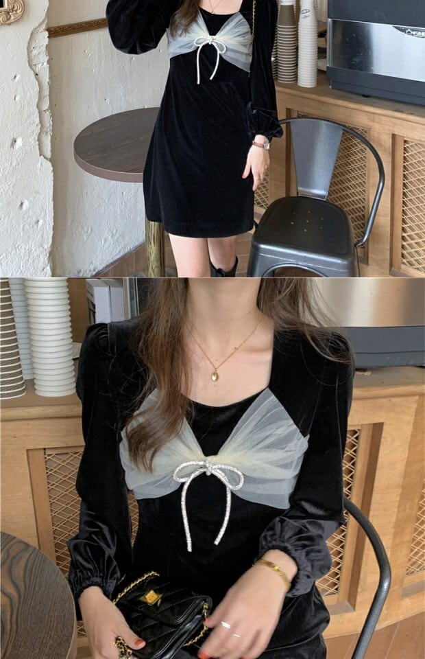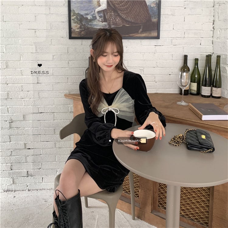 レッドスカート ウィンターウェストベルベットブラックドレス ロング リボン 冬物 kumikum64557242195