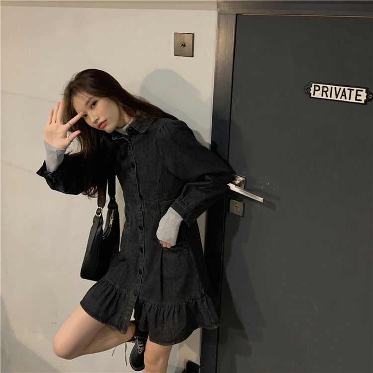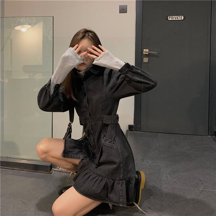 スカート レディースウィンタースタンダードウェストショート長袖スリーブドレス ロング レトロ 冬物 kumikum16921156552