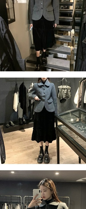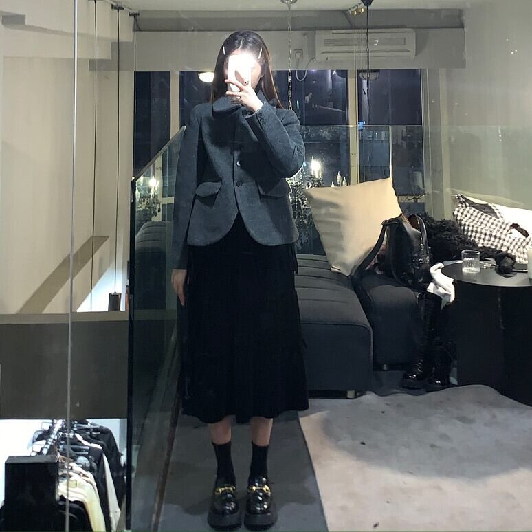 ウィンターショートコート ハイウェストベルベットスカート 冬物 kumikum30052556525