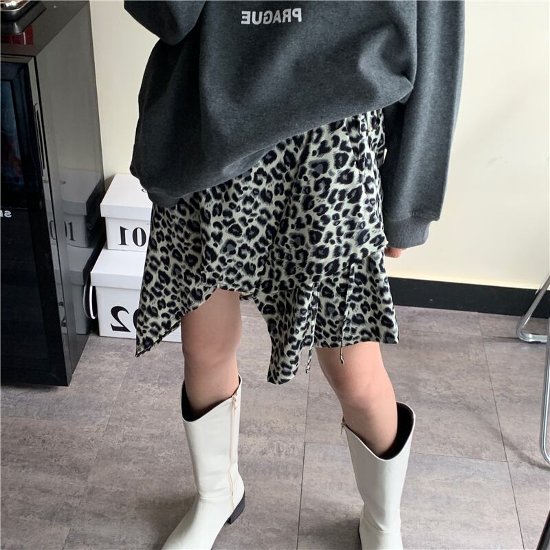 オータムウィンタープリントラウンドネックセーター ジャケット レオパードスカート ロング 秋物 冬物 Oネック kumikum78553992784