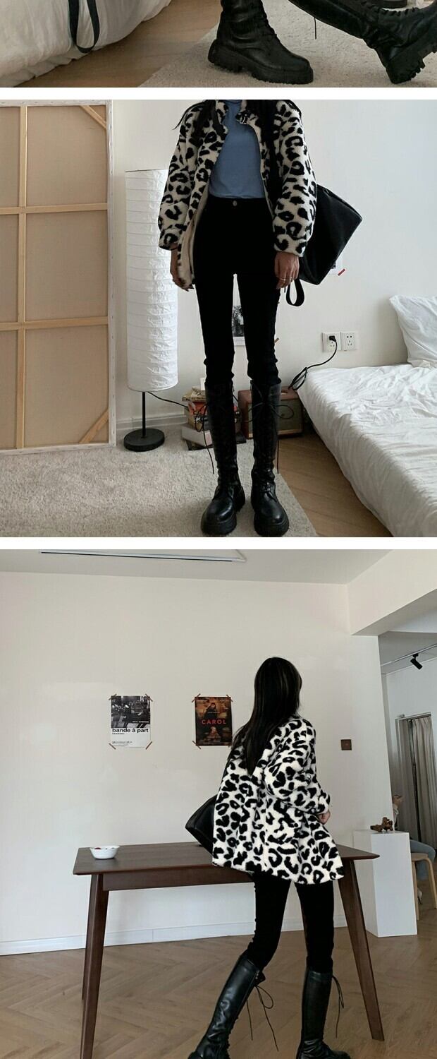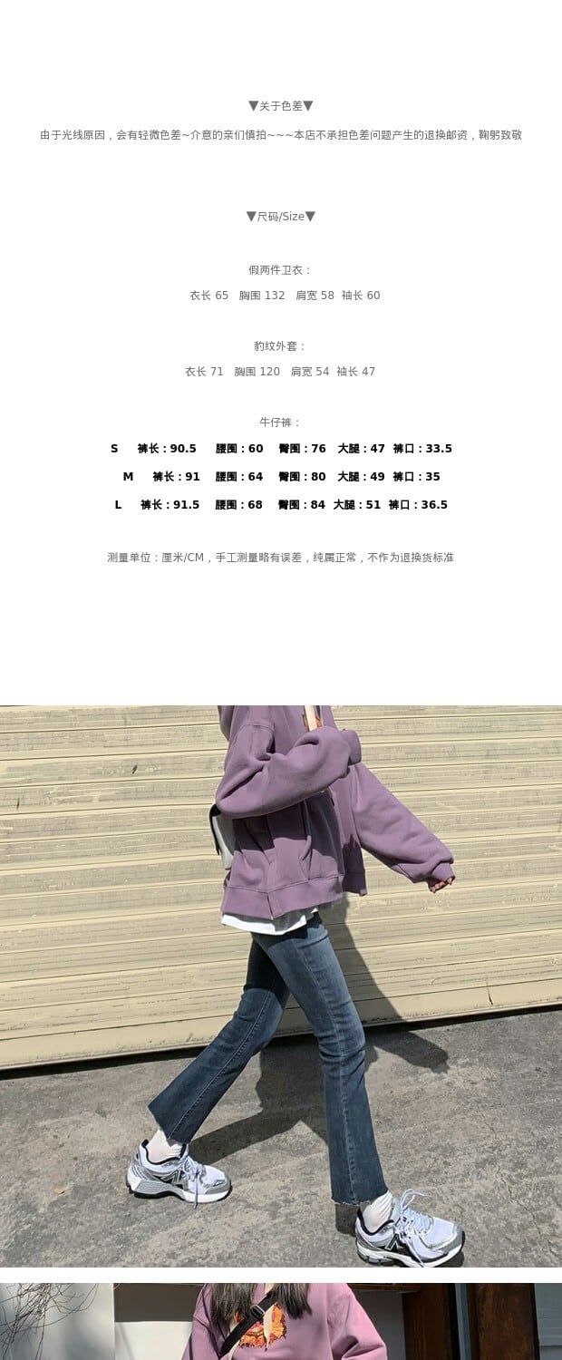 色:ウォッシュドブルージーンズ8861,ブラックジーンズ8861,パープルのフェイクツーピースセーター10629,白ヒョウのコート10826