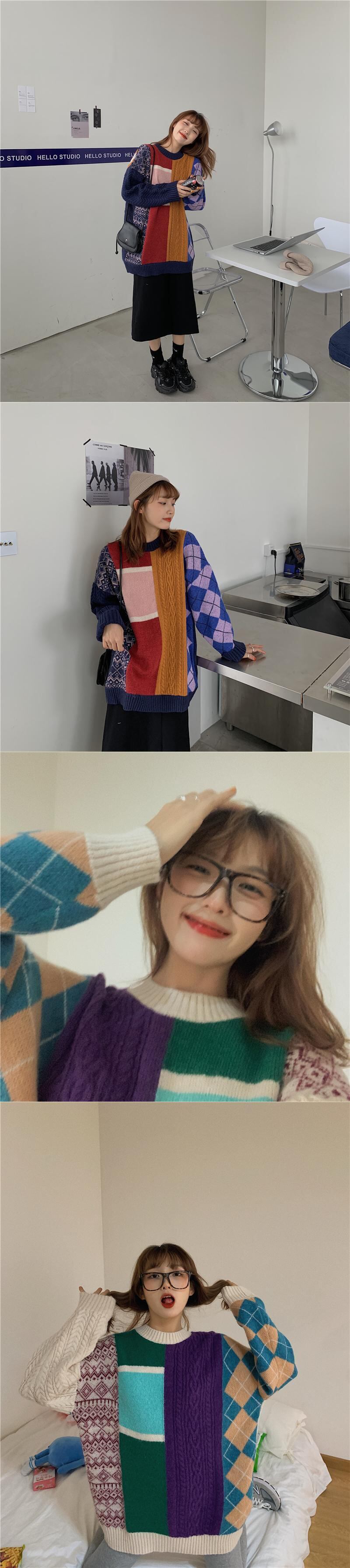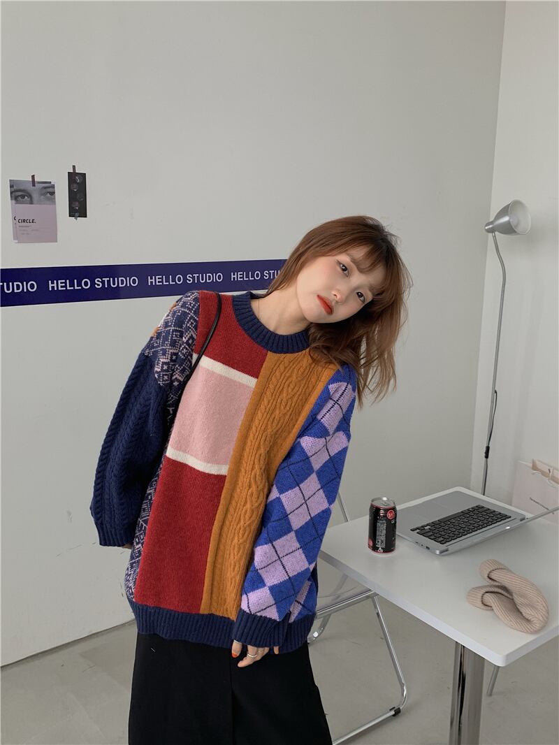 スタイルスタンダードカラーラウンドネックセーター ブラウス レディースオータムウィンタールーズプルオーバー ロング レトロ 秋物 冬物 Oネック kumikum10138828849