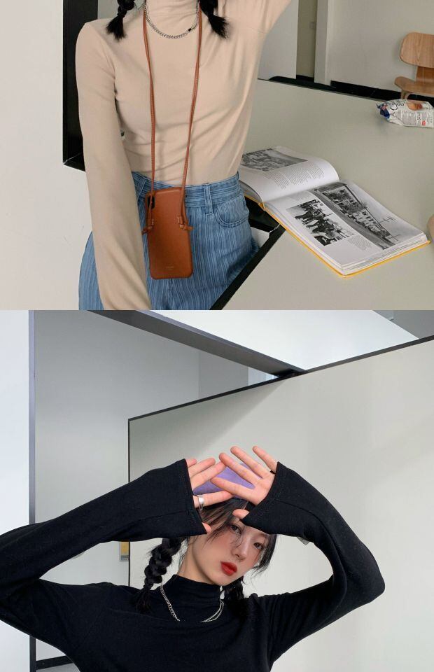 カラースリムシャツ トップス ウィンター薄手Tシャツ ロング レッド 冬物 kumikum66545968926