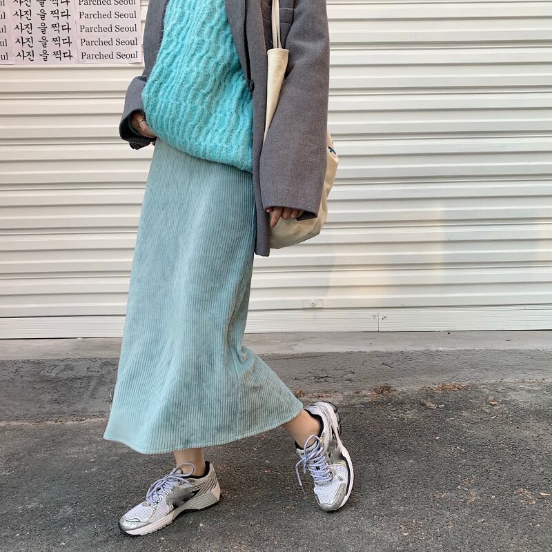 コーデュロイスカート ウィンターハイウェストウェスト薄手Aライン 冬物 kumikum38828352986