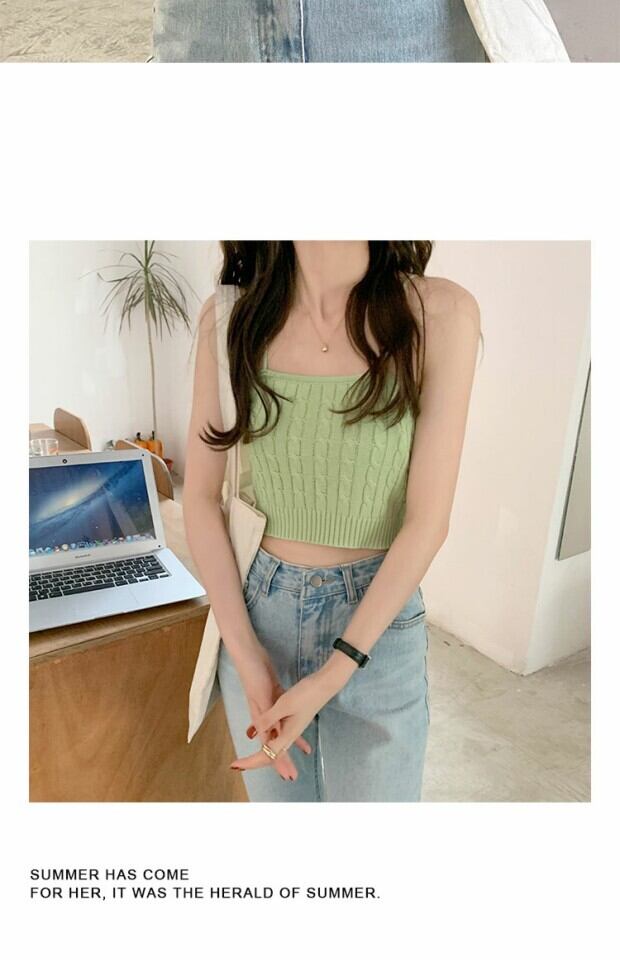 ソリッド カラーニットセーター トップス レディースサマーショートスリムノースリーブ 夏物 ソリッドカラー kumikum64316310890