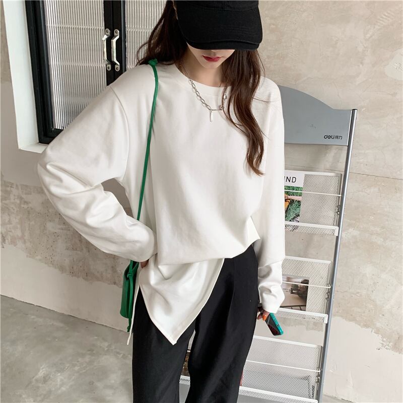 ロングホワイトスリットTシャツ シャツ トップス レディーススプリング 春物 kumikum85533549973