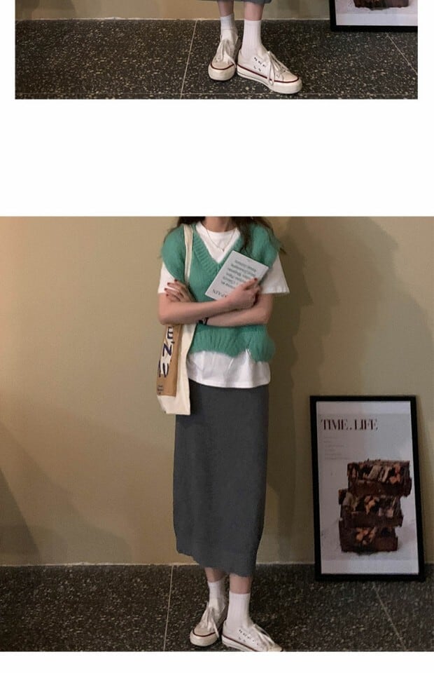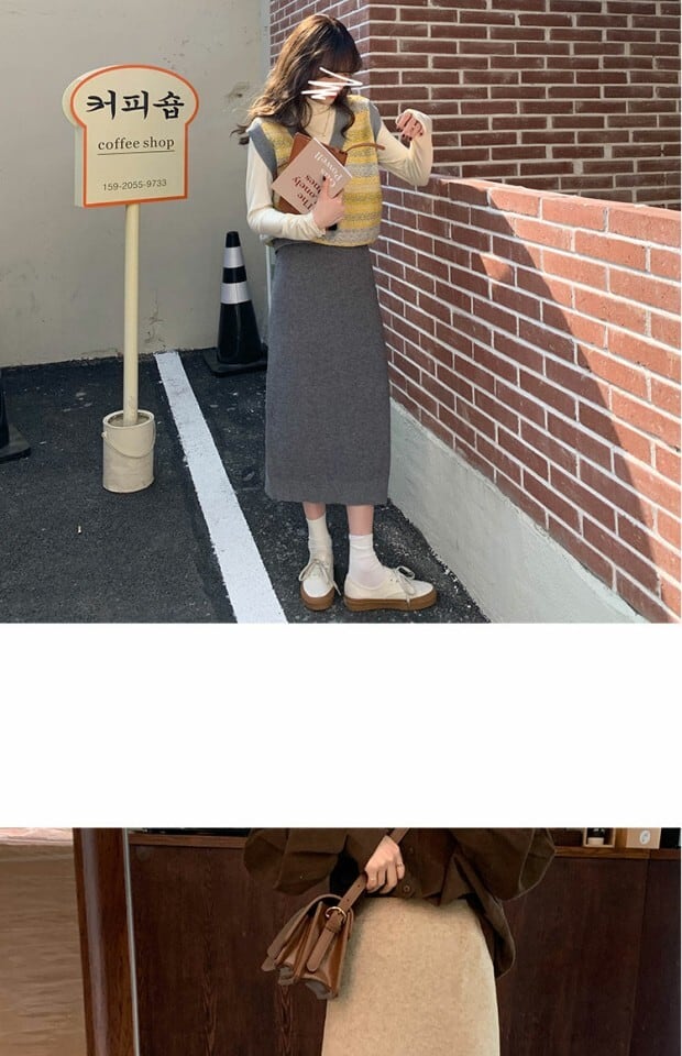 ニットスカート ウィンターロングソリッド カラーハイウェストウェスト薄手Aライン 冬物 ソリッドカラー kumikum36064707900
