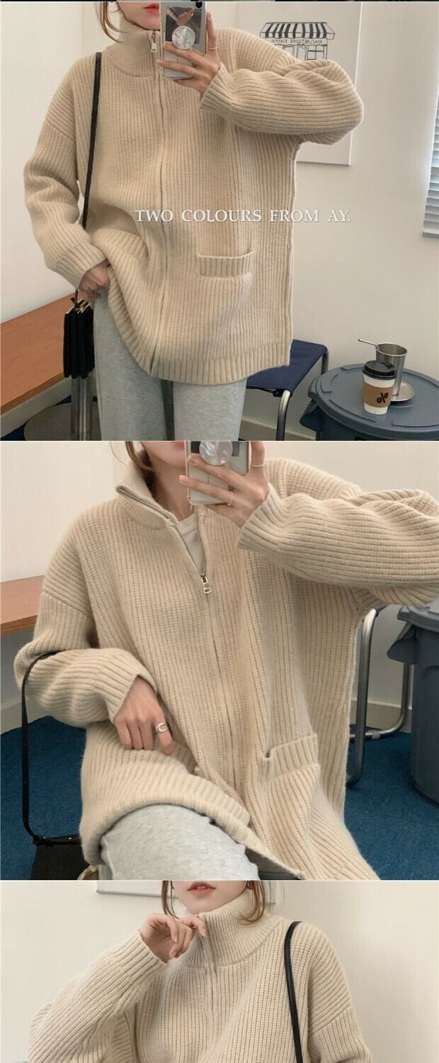 カラージッパーセーター カーディガンジャケット ウィンタートップス ロング 冬物 kumikum87337636100