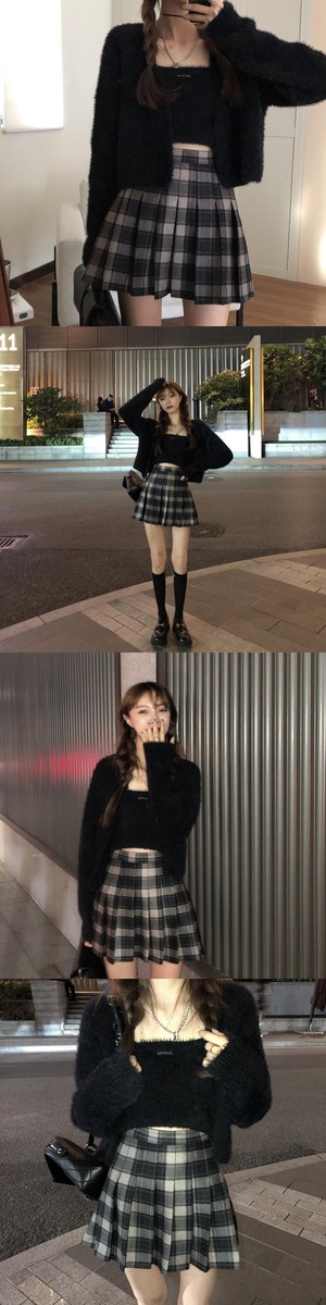 スプリングジャケット プリーツ格子柄スカート 春物 kumikum97546340548