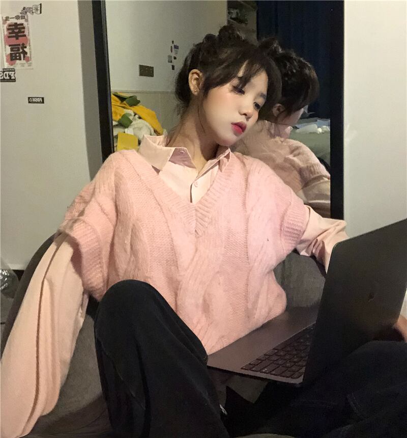 スプリングシャツ Vネックセーター ロング 春物 kumikum1114620141
