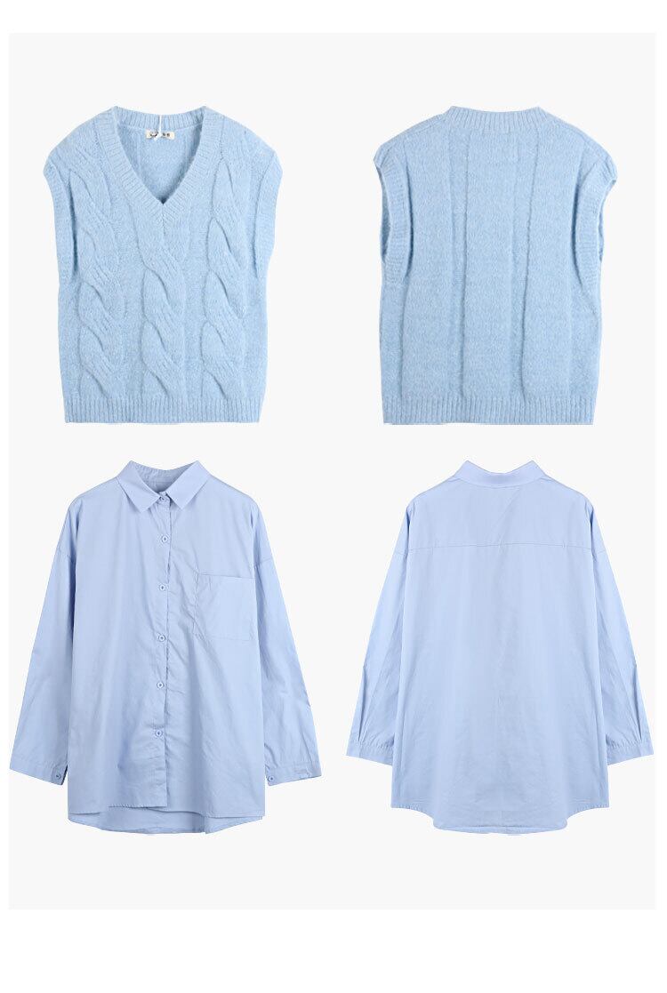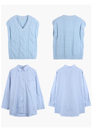色:青いシャツ,ピンクのシャツ,青いベスト,ピンクのベスト