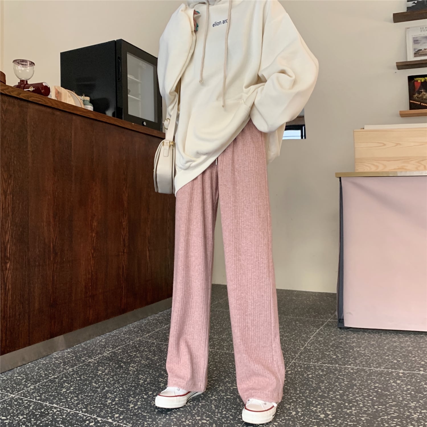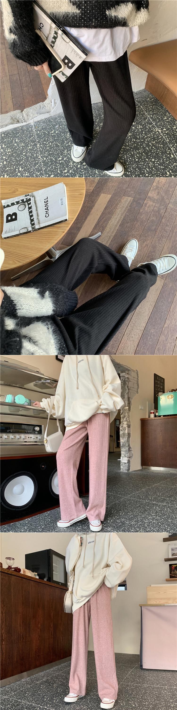 ニットカジュアルパンツ スプリングハイウェスト薄手 春物 kumikum35430526863
