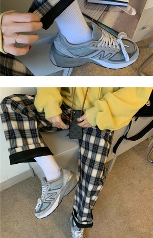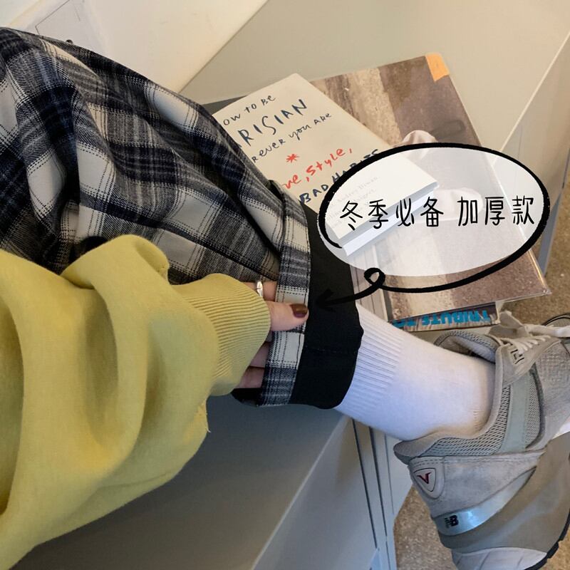 パンツ レディースルーズウィンターハイウェストウェスト格子柄カジュアル 冬物 kumikum42110502759