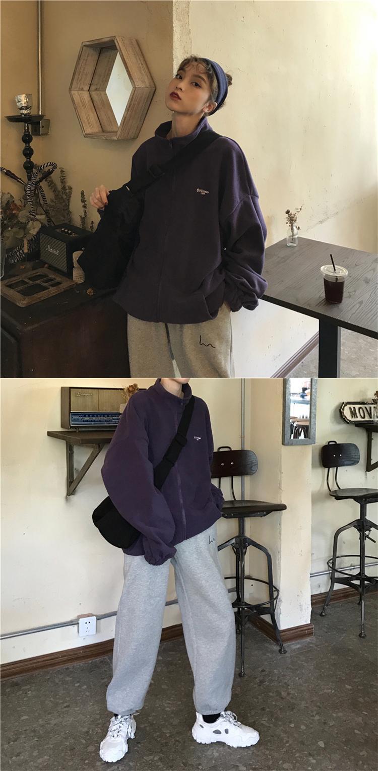 色:紫のコート,グリーンジャケット,オフホワイトコート,赤いズボン,ダークグレーのズボン,ホワイトグレーのズボン