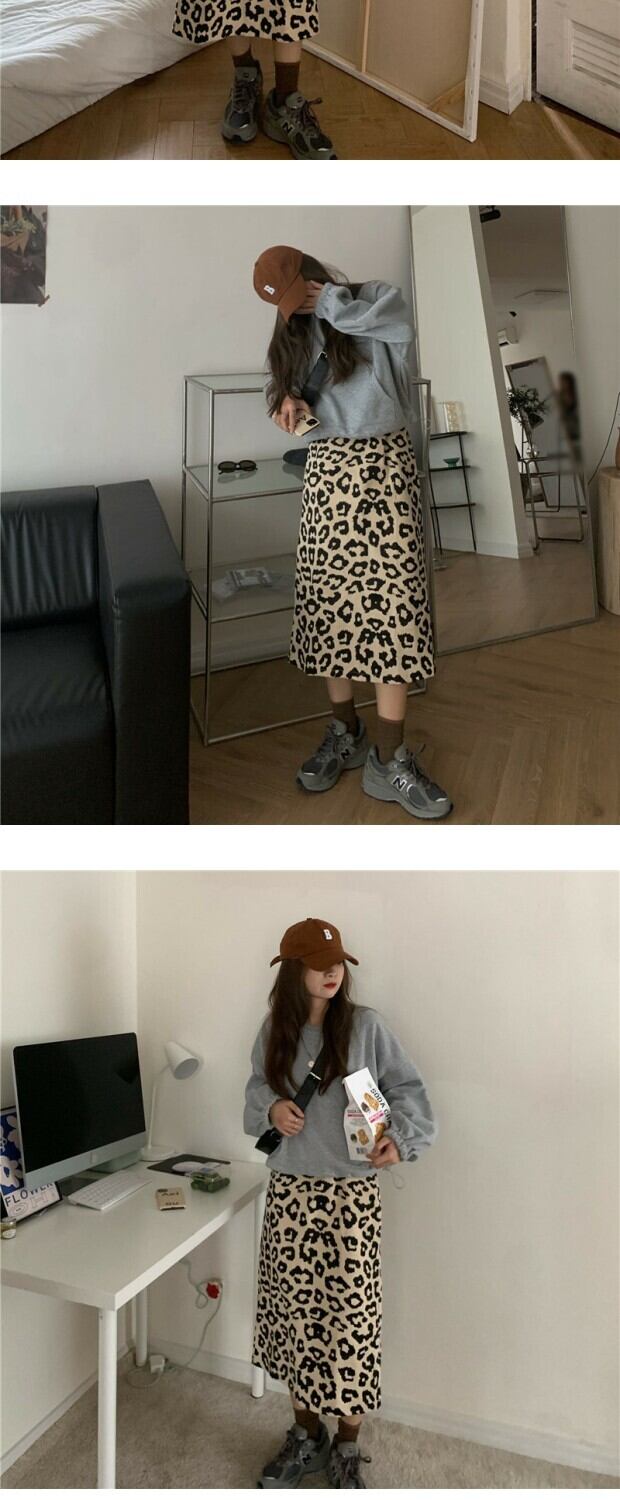 スタンダードレオパードプリント柄スカート ウィンターハイウェストウェストスリムカジュアルAライン レトロ 冬物 kumikum35770688355