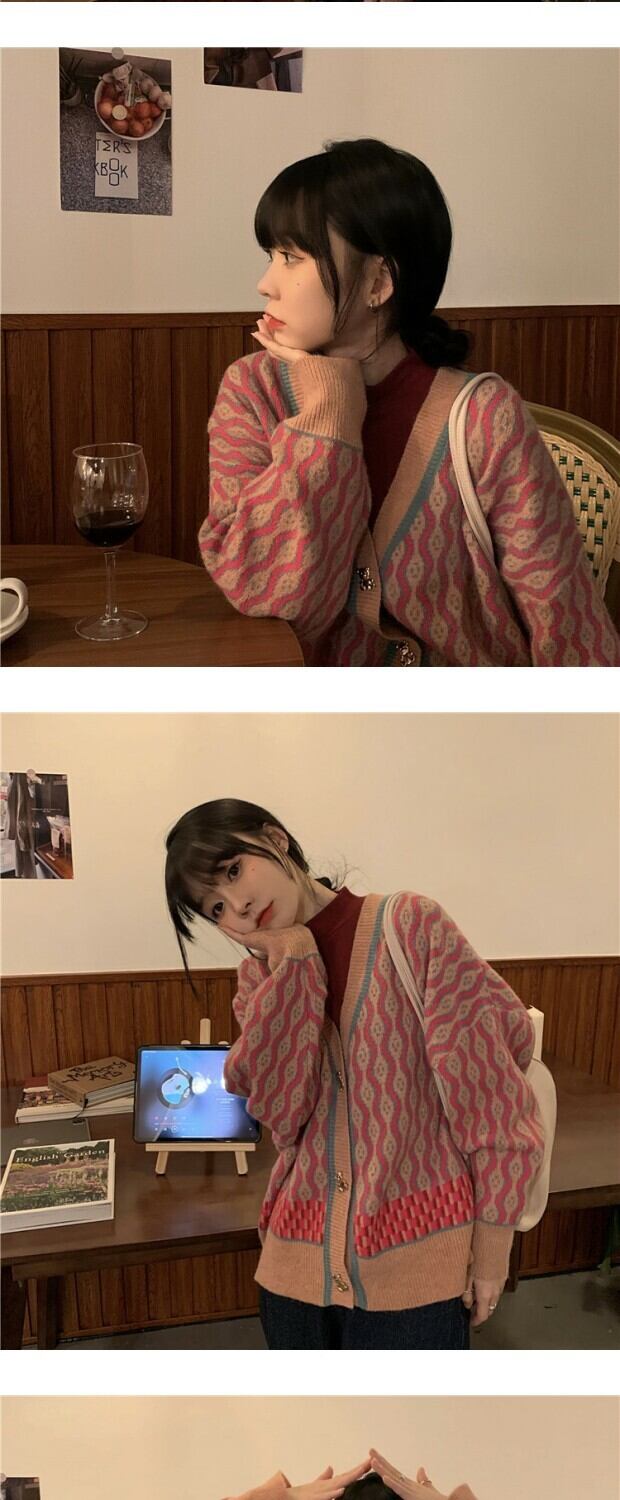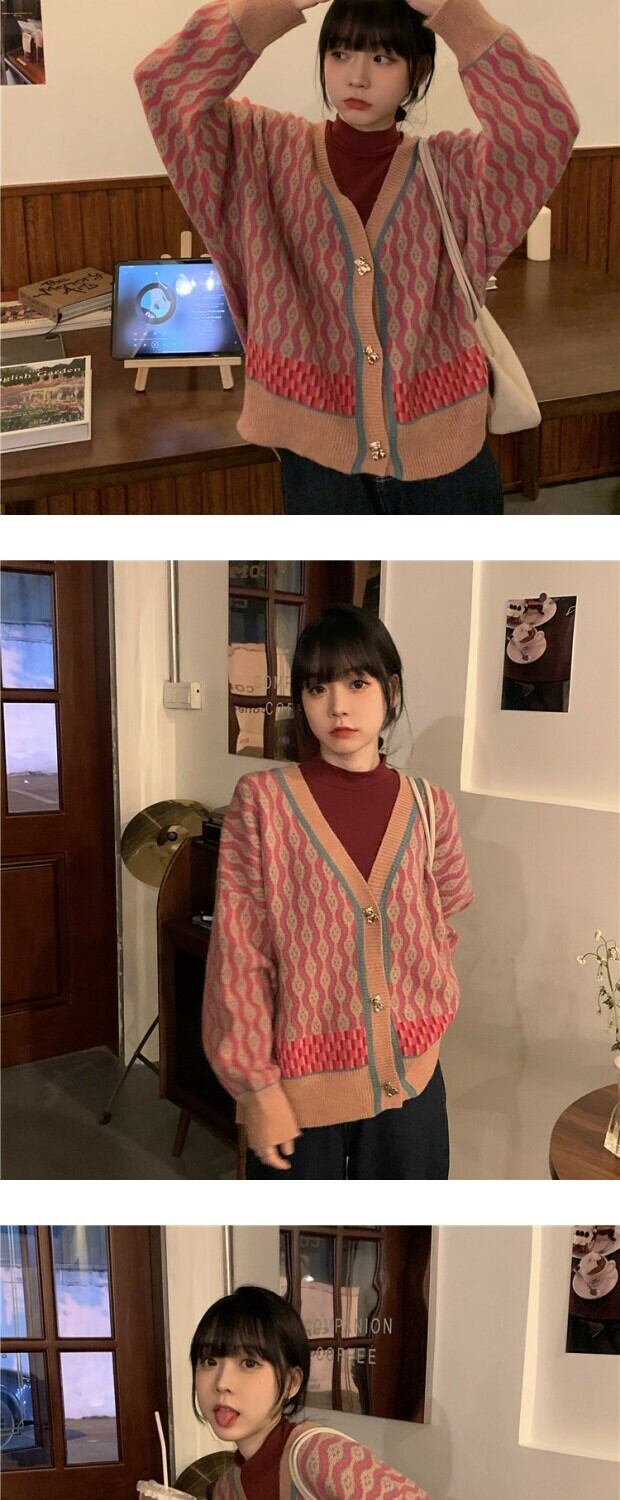 スタイルVネックセーター トップス レディースウィンタースタンダードカーディガンジャケット ロング レトロ 冬物 kumikum42192885823
