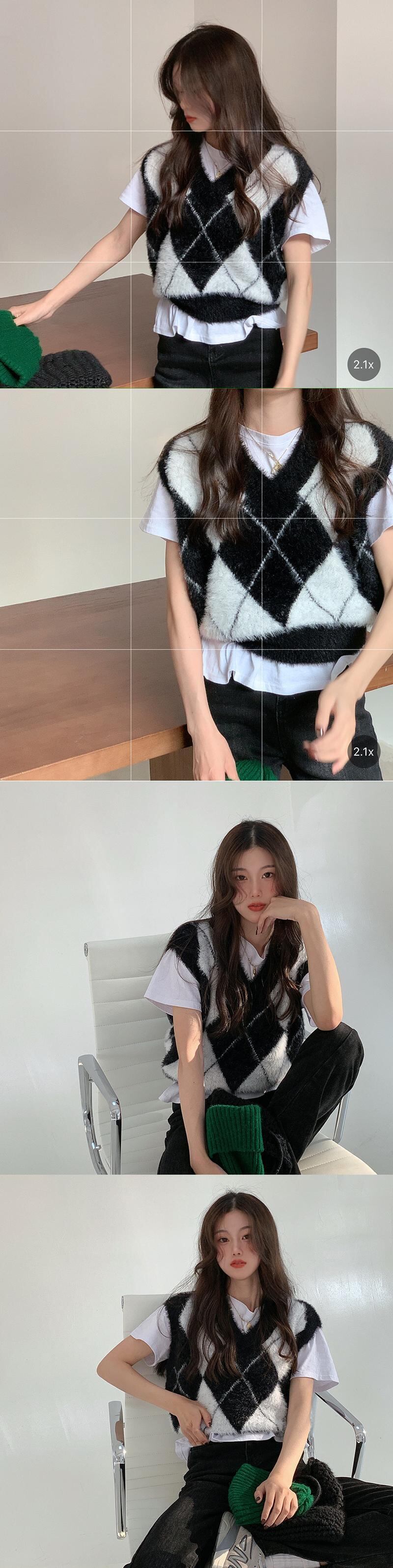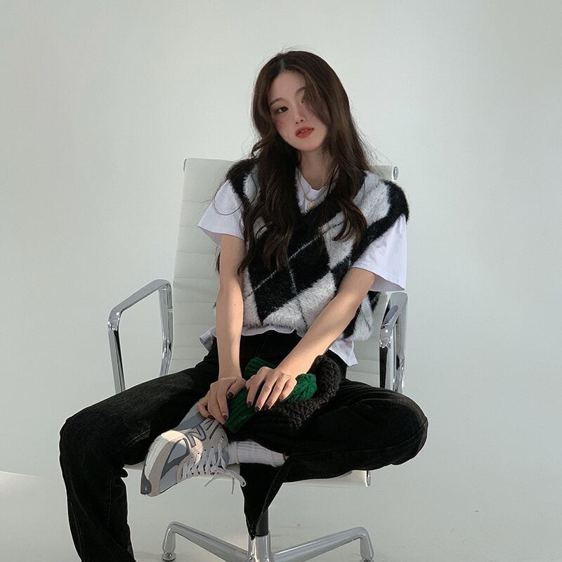 ニットスプリングスタンダードVネックカラールーズ レトロ 春物 kumikum10747964906