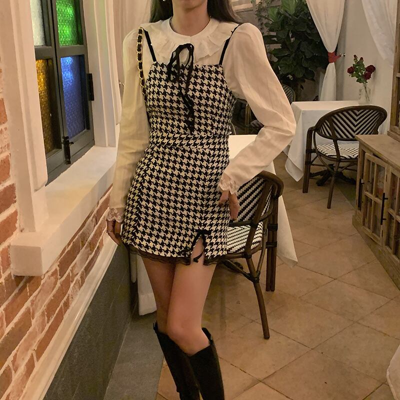 色:白と黒の千鳥格子のドレス10888,赤と黒の千鳥格子のドレス10888,白いシャツ10889
