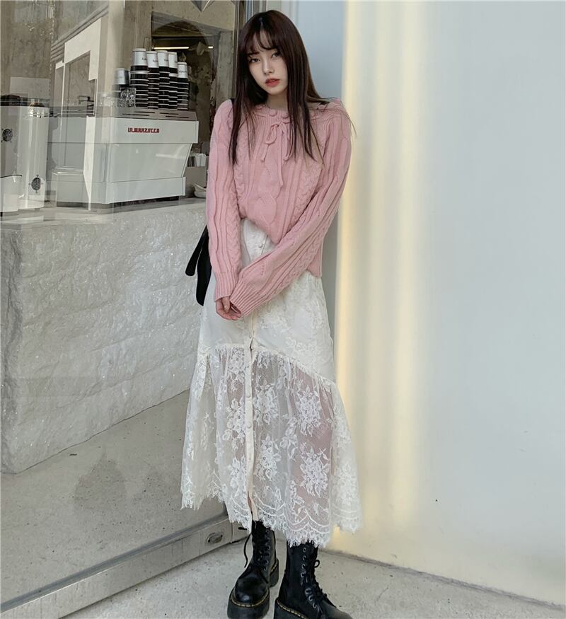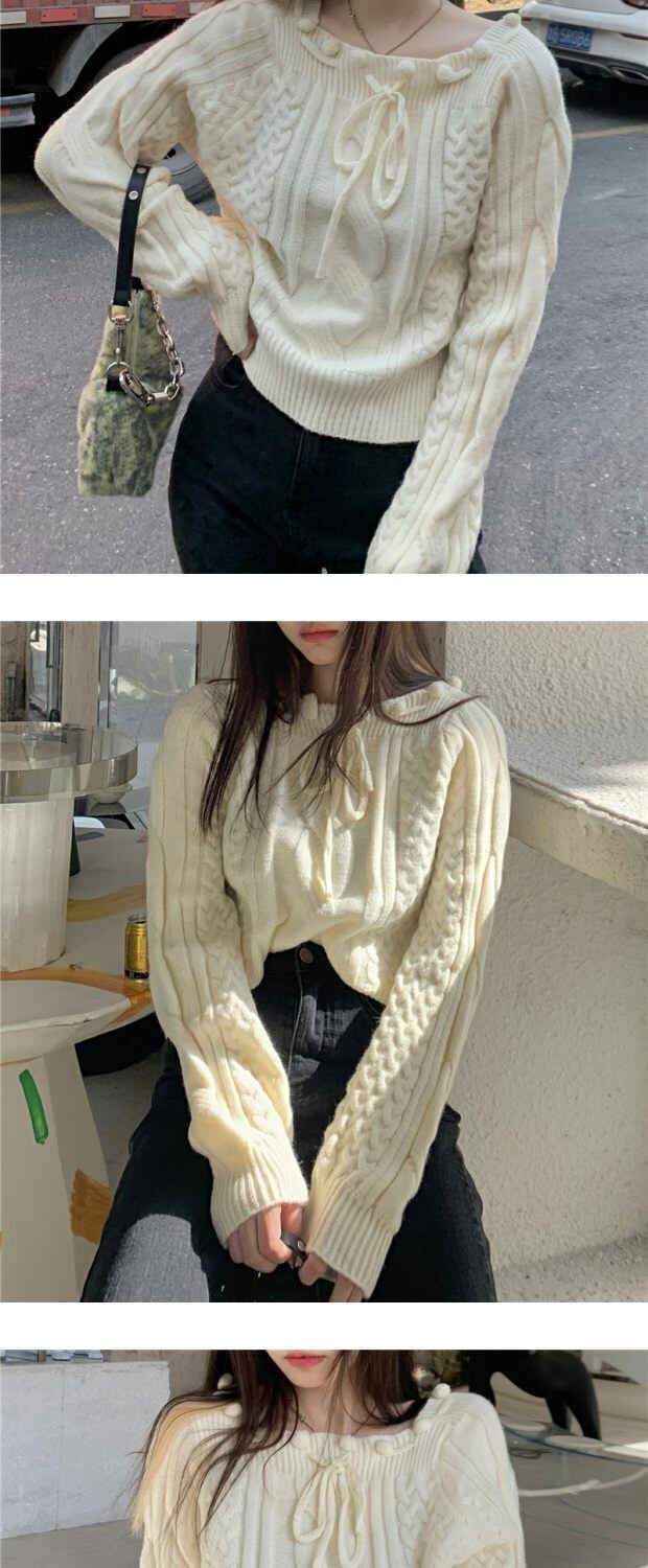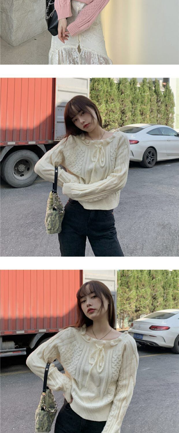 ショートニットセーター トップス レディースウィンタースタイルスタンダード ロング リボン レトロ 大人ガーリー スウィート キュート カジュアル 冬物 kumikum51979298936