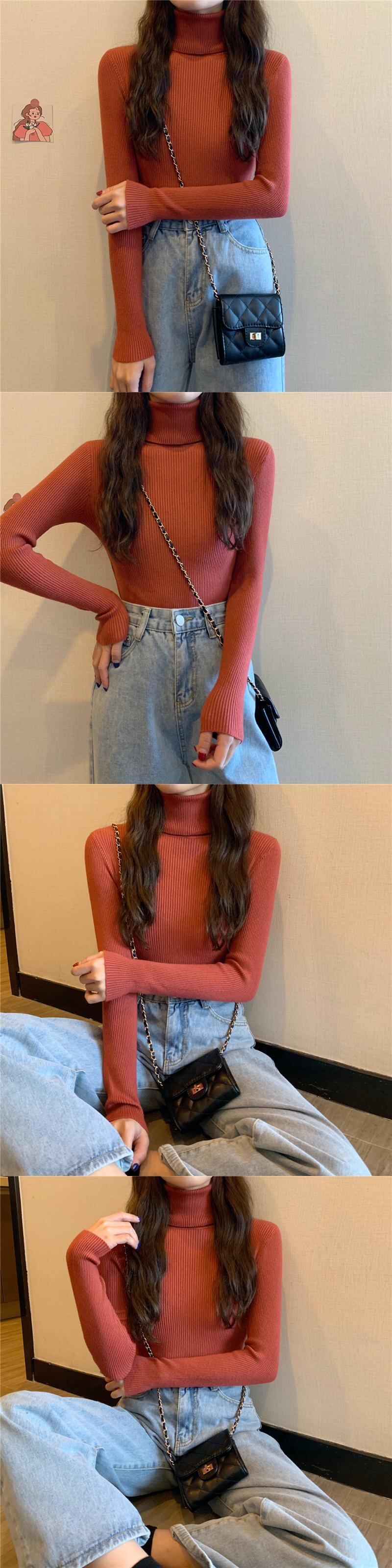 カラースリムセーター プルオーバー スプリングトップス ロング 春物 kumikum46857655061