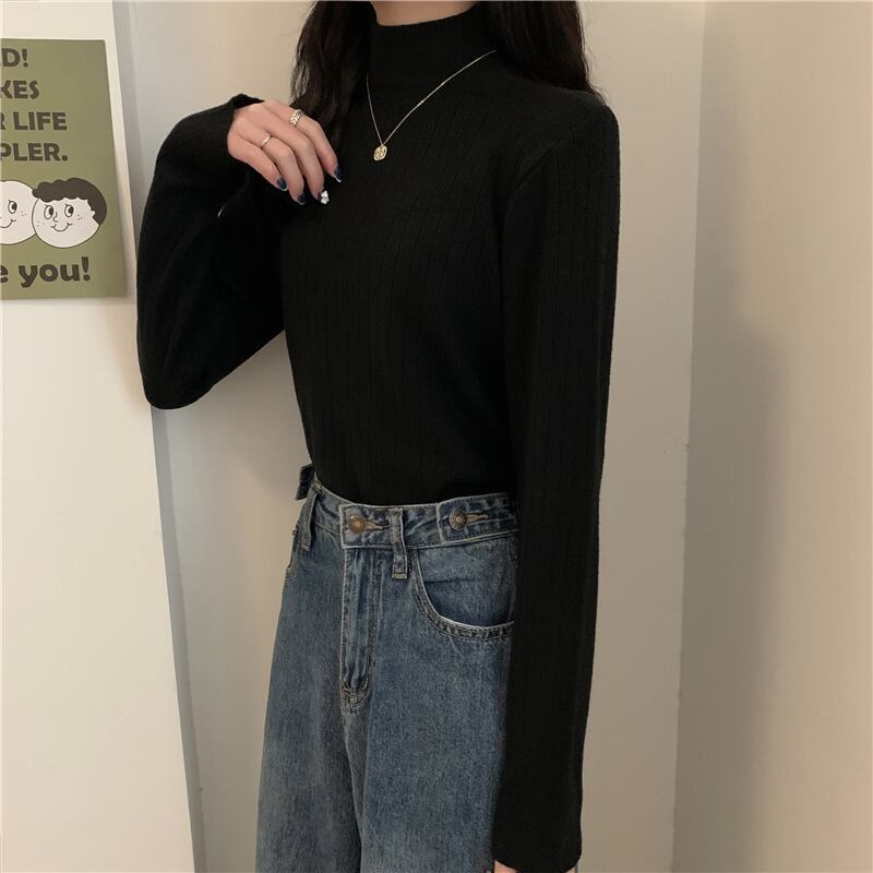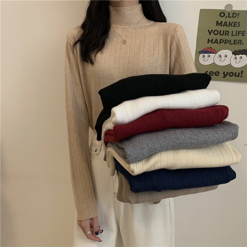 ソリッド カラーストライプニットセーター レディーススプリングスリムシャツ トップス ロング 春物 ソリッドカラー kumikum12714541410