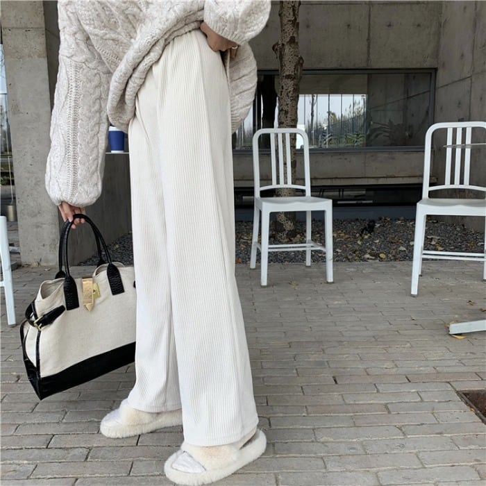 コーデュロイパンツ ルーズカジュアル薄手スプリングハイウェストウェストワイドレッグ 春物 ワイドパンツ kumikum65669055970