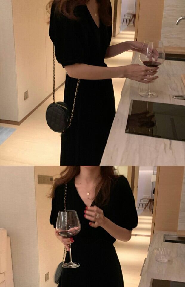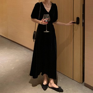 ウィンタースタンダードスカート ブラックウェストVネックゴールドベルベットドレス レトロ 冬物 kumikum54591366909