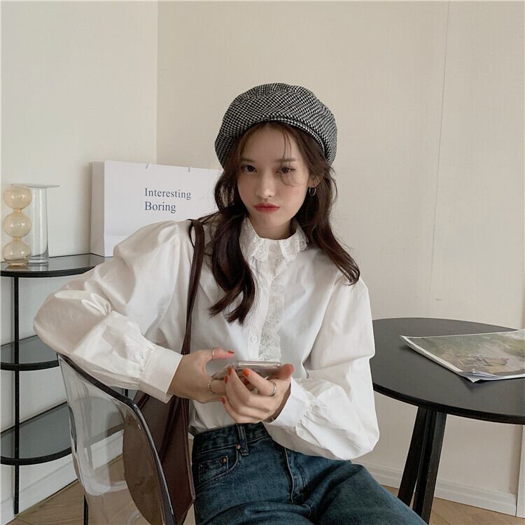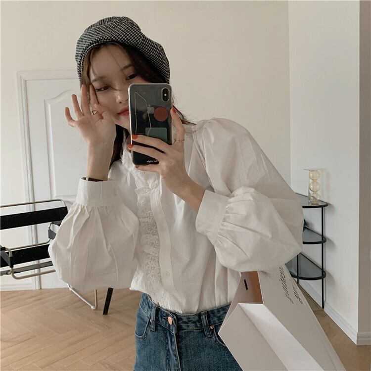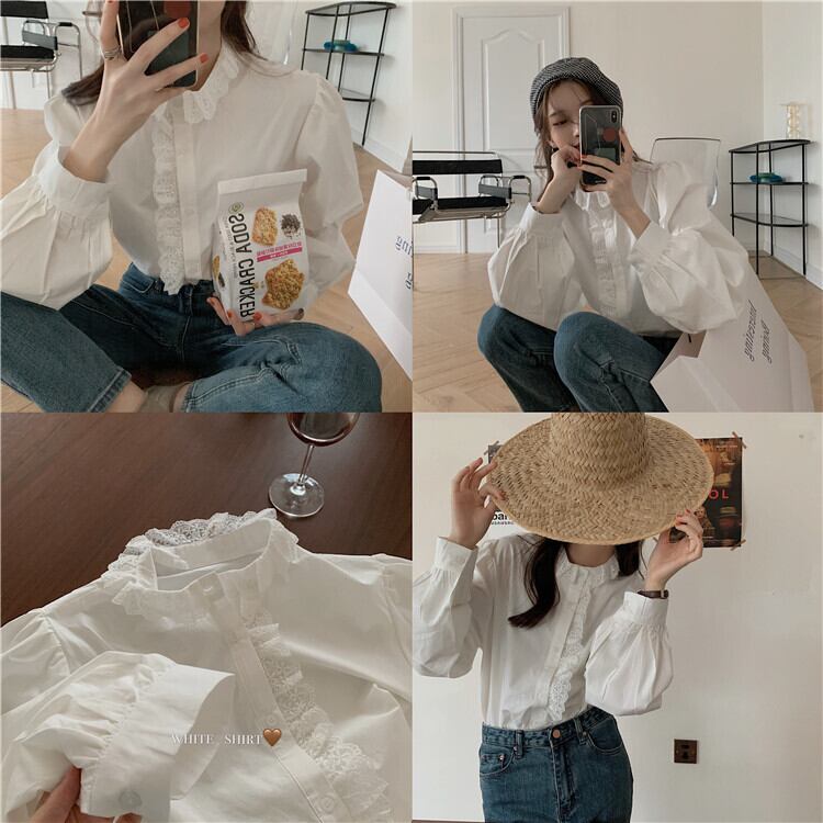 スタイルブラウス レディースウィンタールーズホワイトシャツ ロング レース 冬物 kumikum80400309686