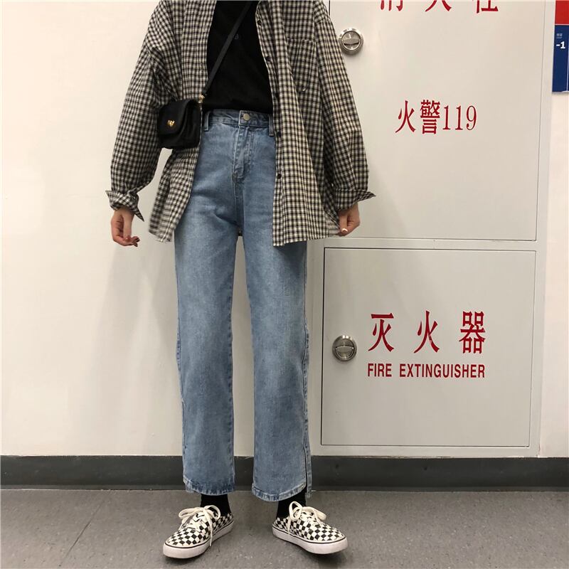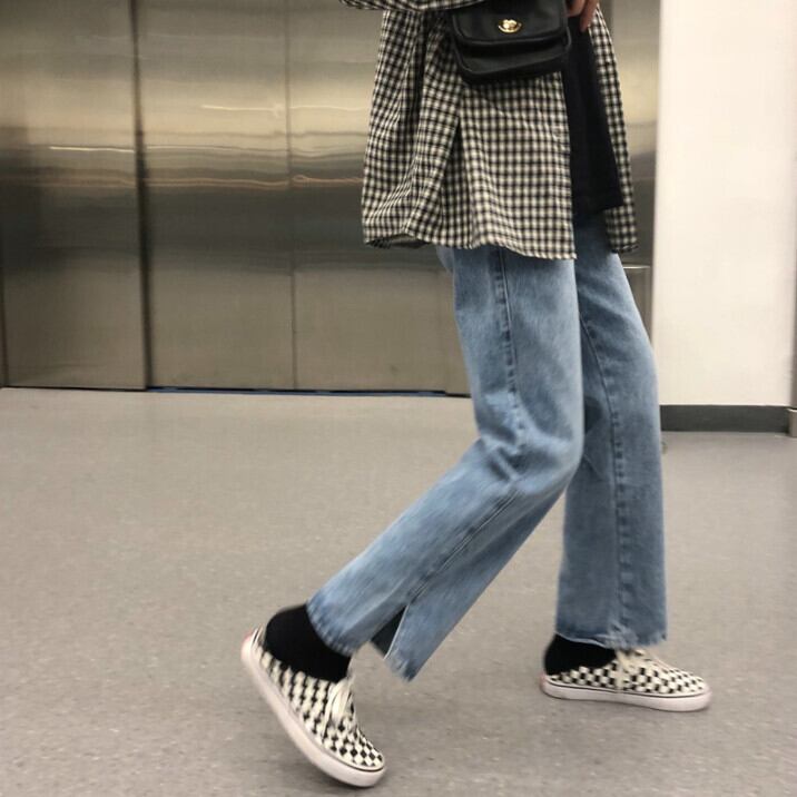 オータムスタンダードハイウェストホワイトジーンズ 薄手 レトロ 秋物 kumikum56443486845