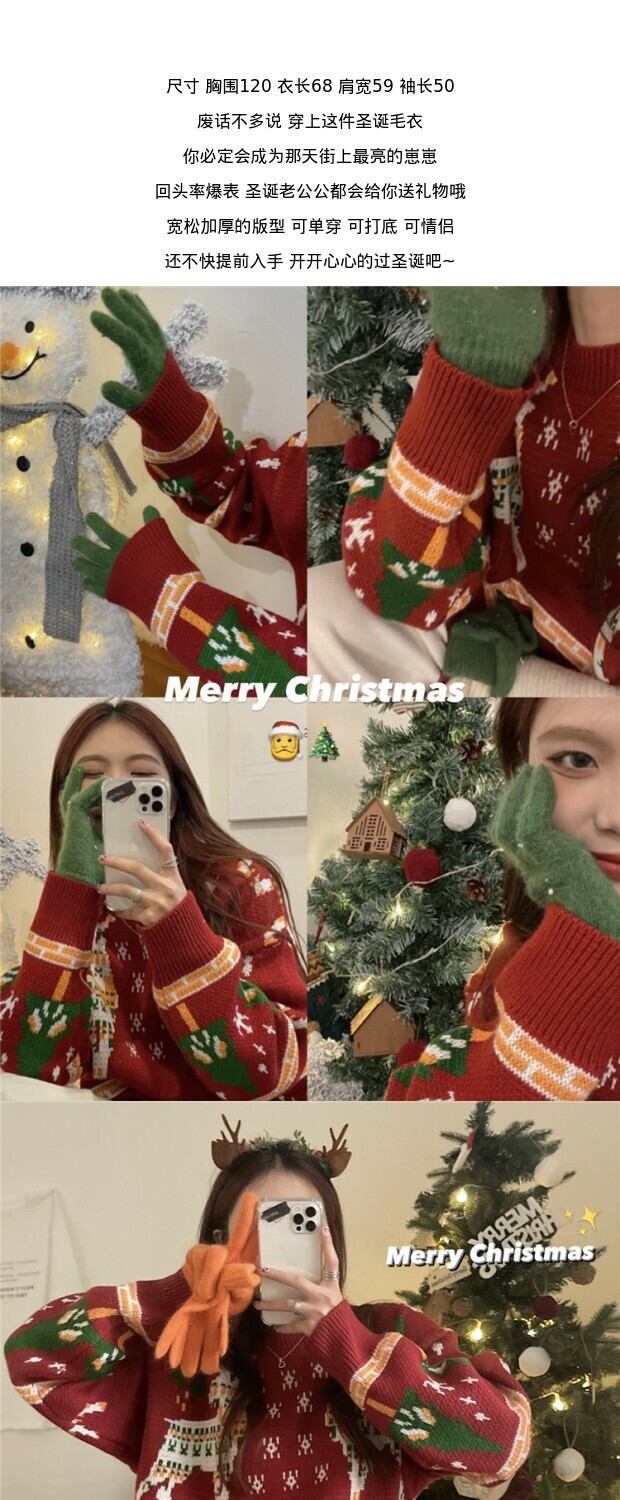 スタンダードラウンドネックセーター レディースルーズレッドプルオーバー ニットトップス ロング レトロ Oネック kumikum70030679056