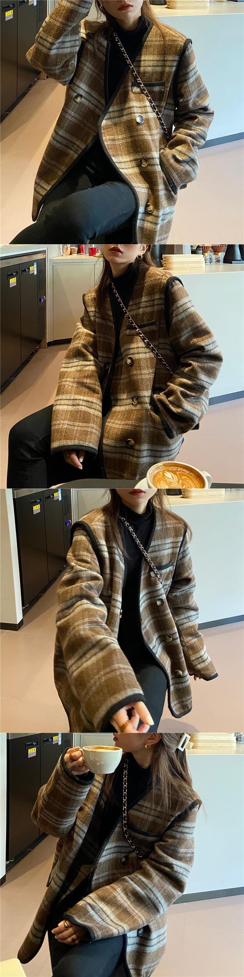 格子柄ブレザー スタンダードウィンタールーズショートトップス レトロ 冬物 kumikum81785135318