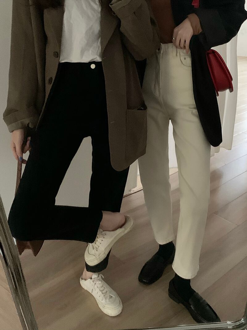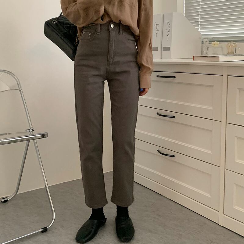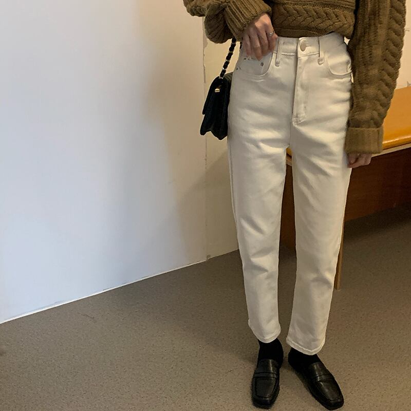 スプリングジーンズ パンツ ハイウェストウェストスリムソリッド カラーカジュアル 春物 ソリッドカラー kumikum20843083076