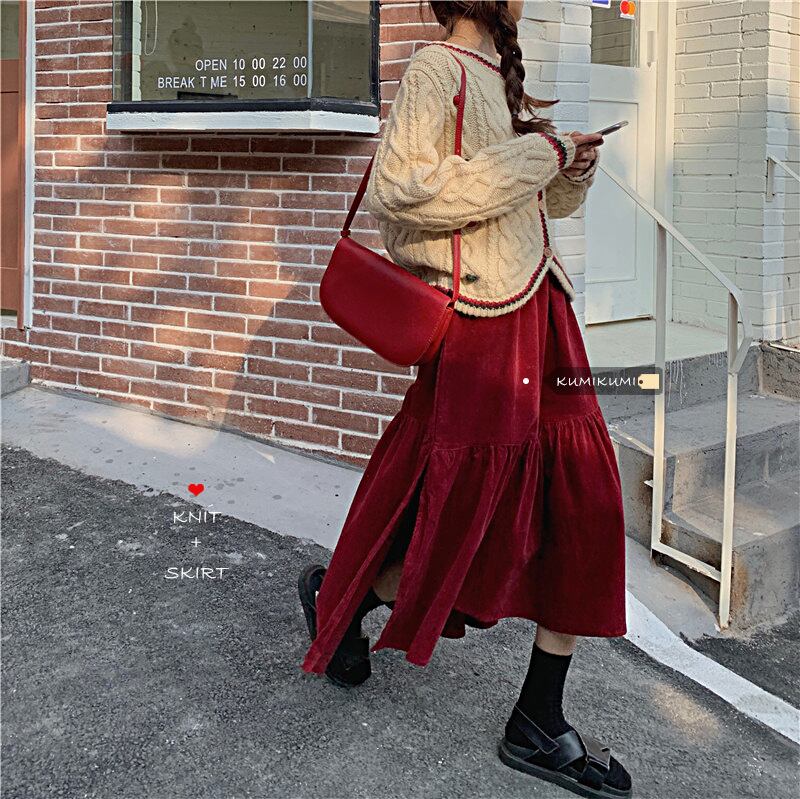 スプリングカラーニットセーター コーデュロイスカート 春物 kumikum65492052626