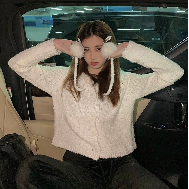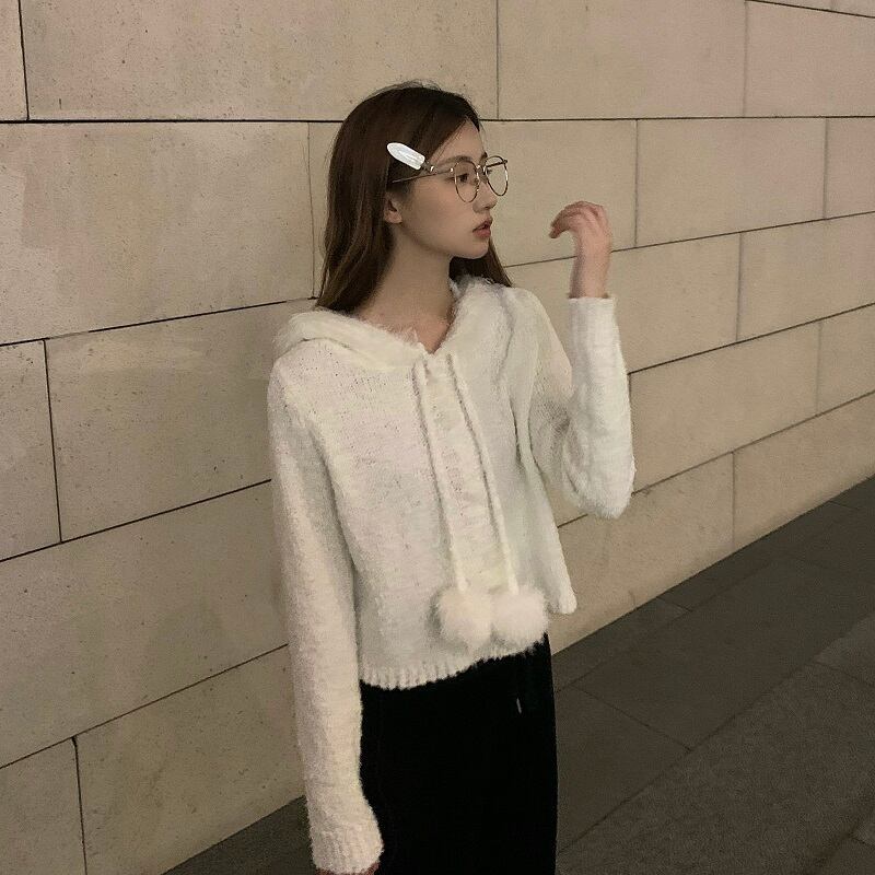 ホワイトフードセーター カーディガンジャケット オータムルーズショートトップス ロング 秋物 kumikum83476754745