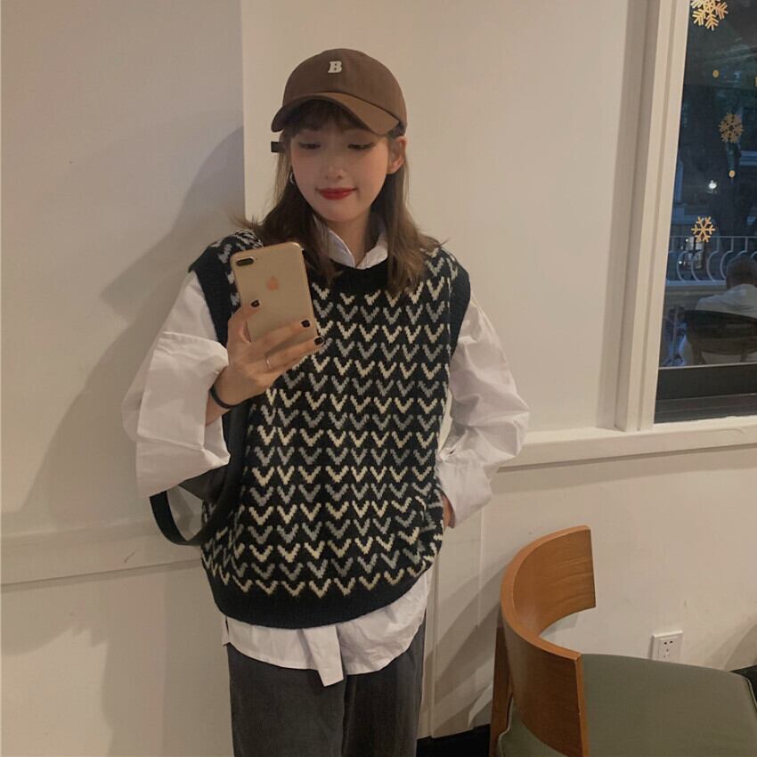 スタンダードカラーニットウィンタールーズノースリーブセーター ジャケット レッド レトロ 冬物 kumikum46714696000