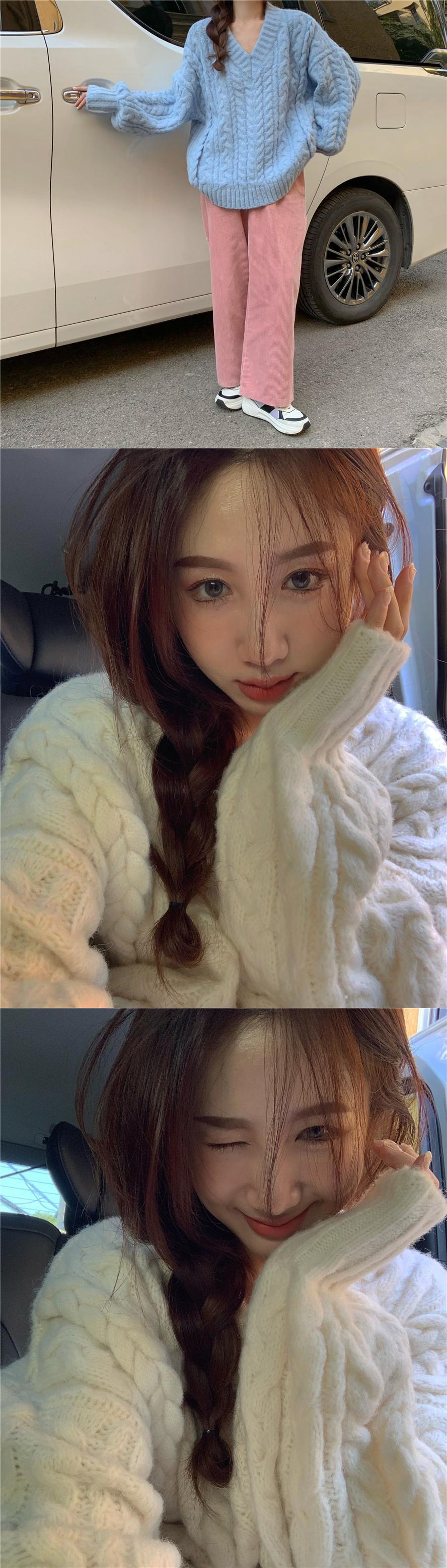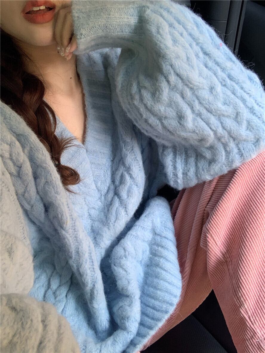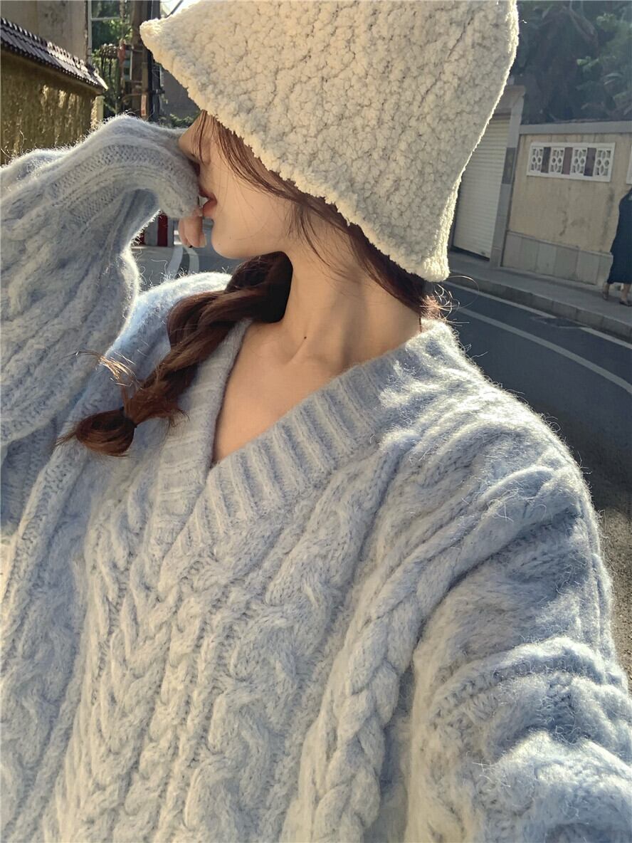 スタイルVネックプルオーバー セーター レディースウィンタールーズブラウス ロング 冬物 kumikum43465246479