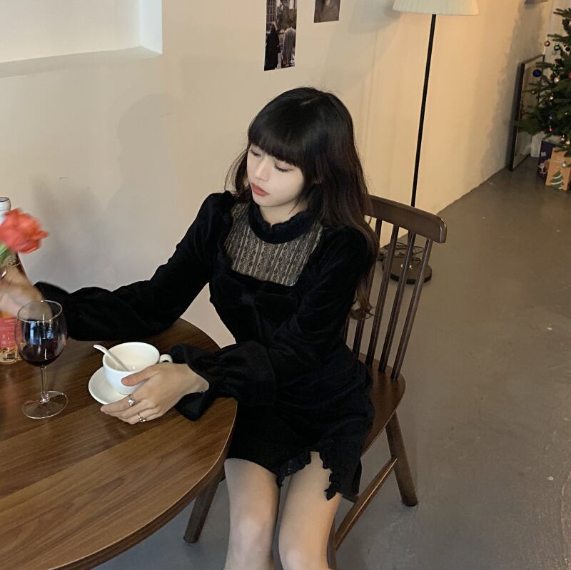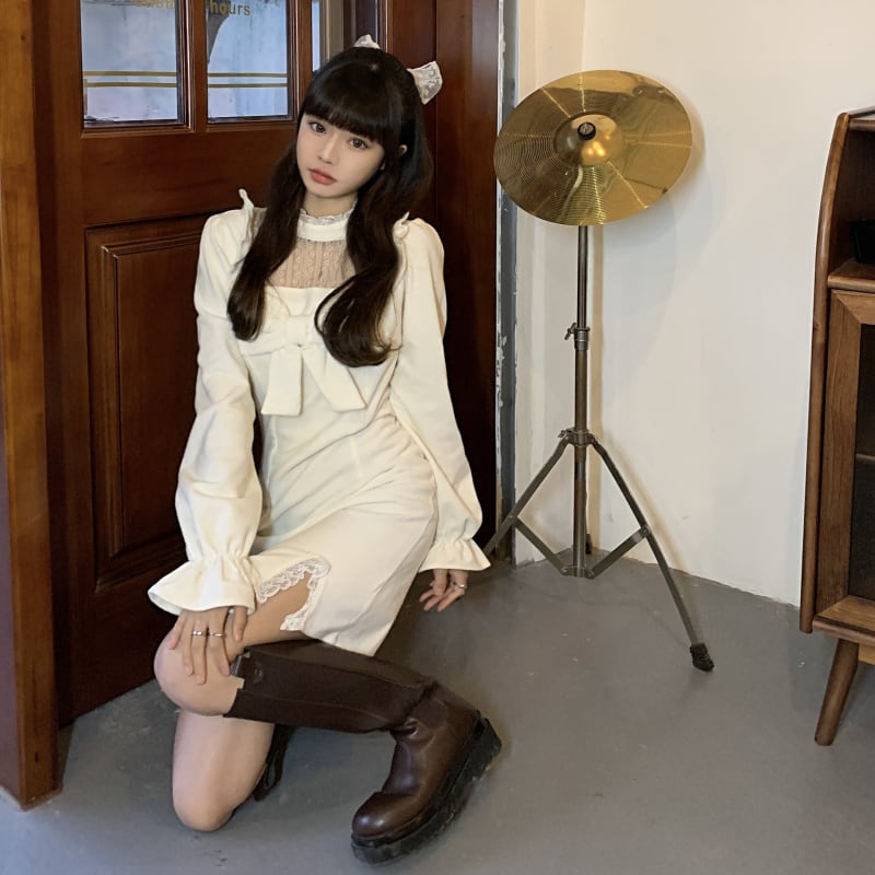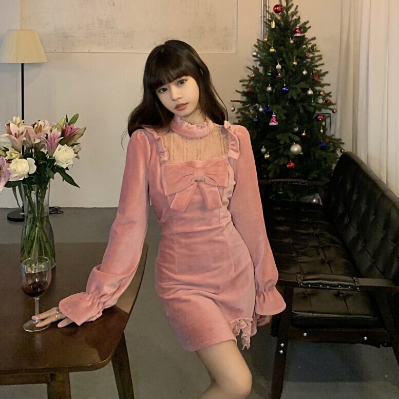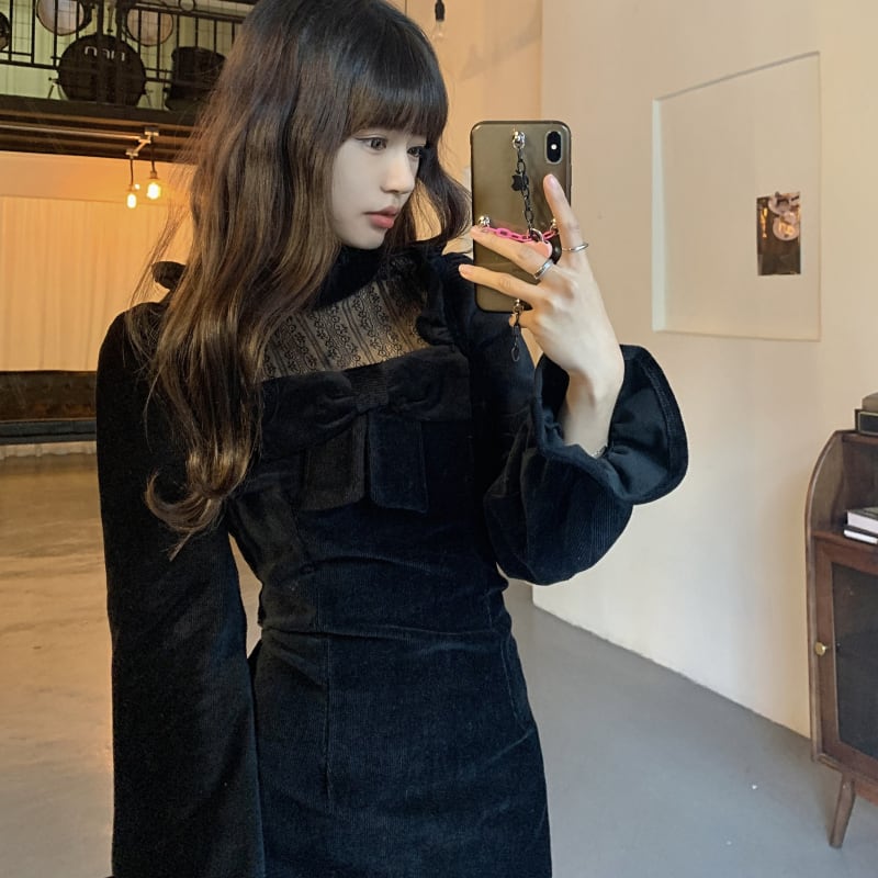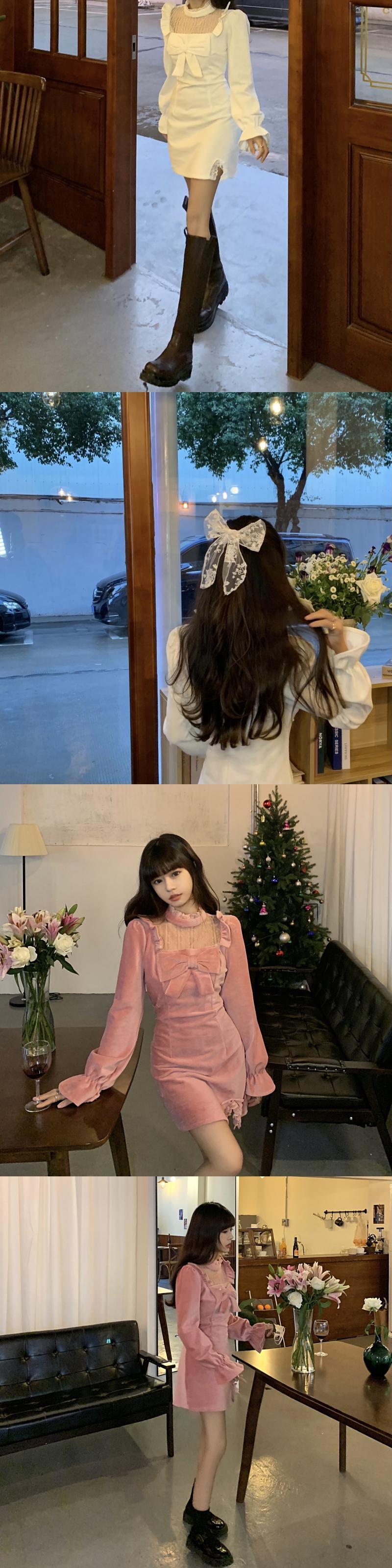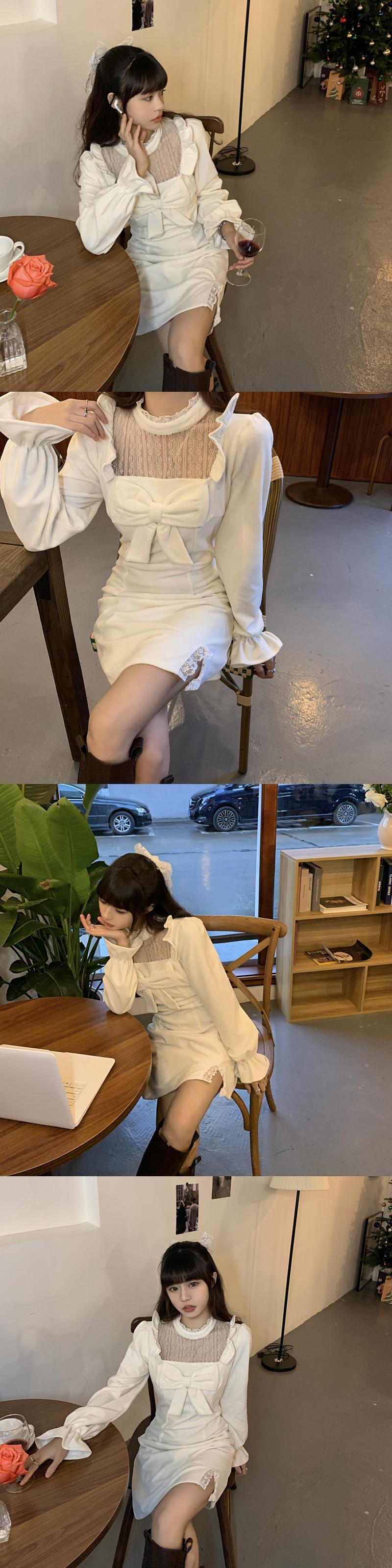 スリムドレス ウィンターレースショートスカート ロング リボン 冬物 kumikum91428442450