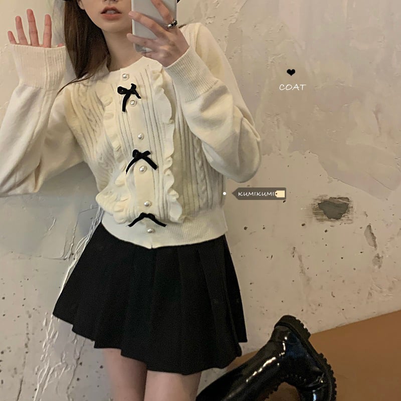レースニットセーター トップス ウィンタースリムショート ロング リボン 大人ガーリー スウィート キュート カジュアル 冬物 kumikum26480145121