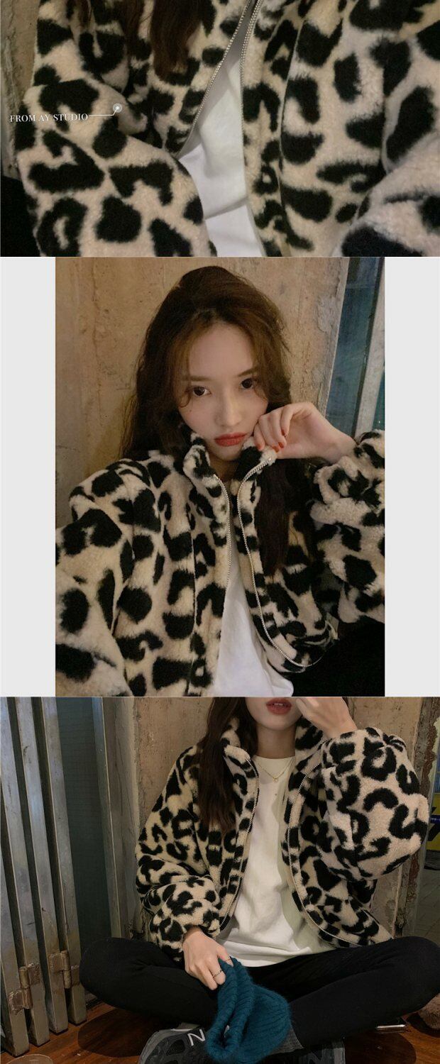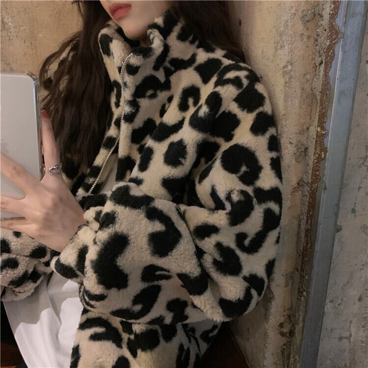 スタンダードレオパードプリント柄ジャケット ウィンタールーズトップス ロング レトロ 冬物 kumikum93815568833