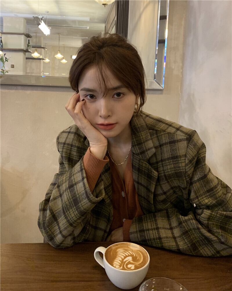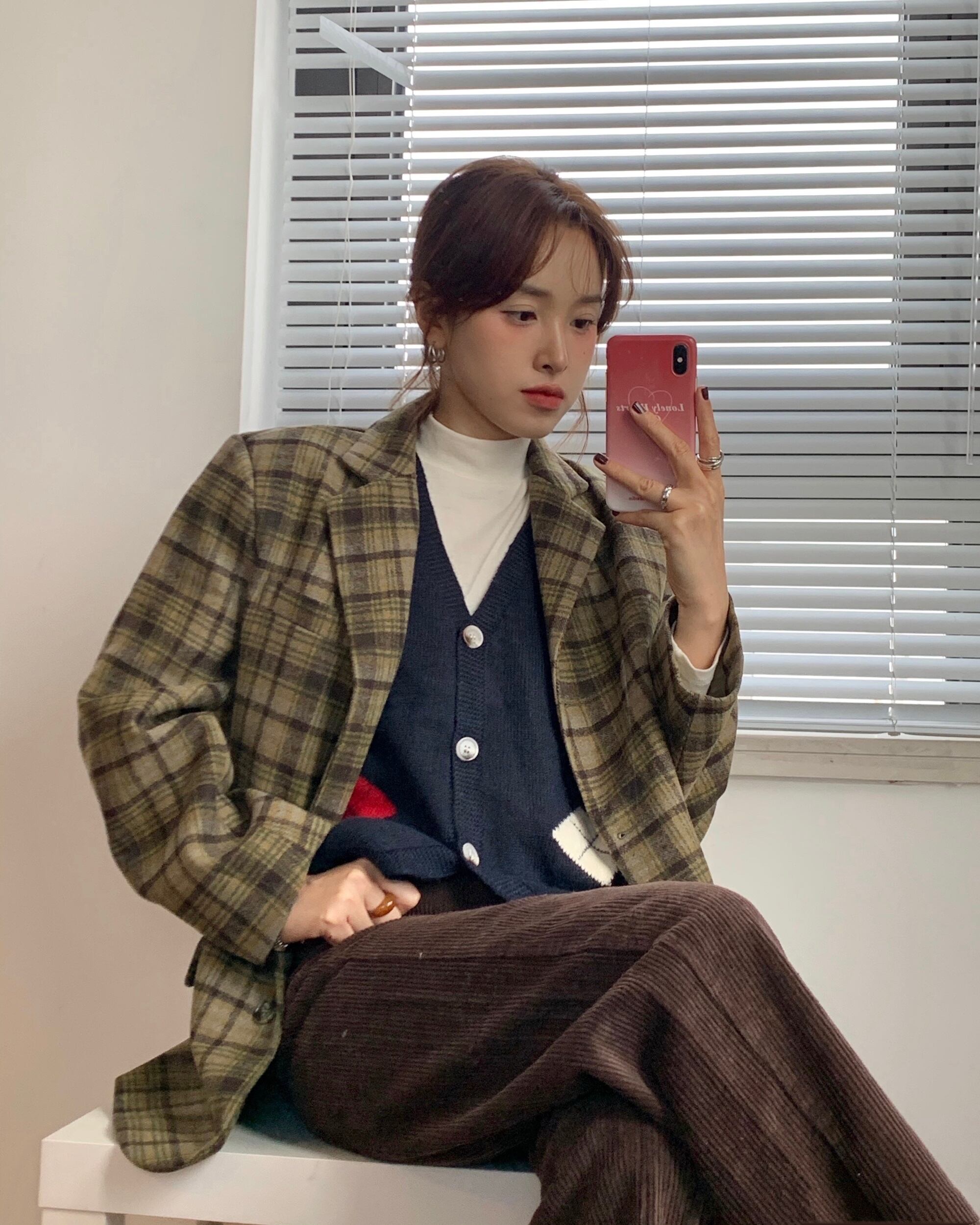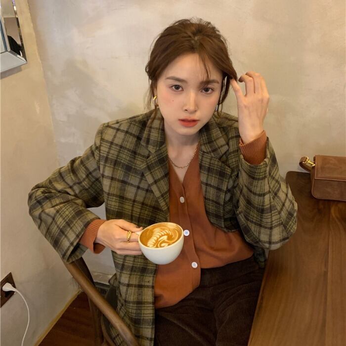 ルーズスタンダード格子柄ジャケット オータムウィンターカジュアル レトロ 秋物 冬物 kumikum51585783091