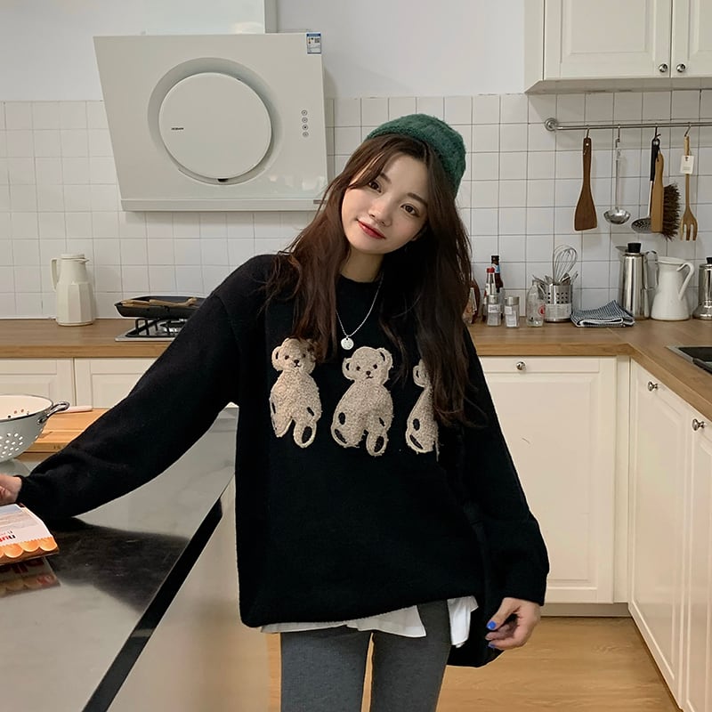 ラウンドネックプルオーバー セーター スプリングルーズスタイルニットトップス 春物 Oネック kumikum57421986942