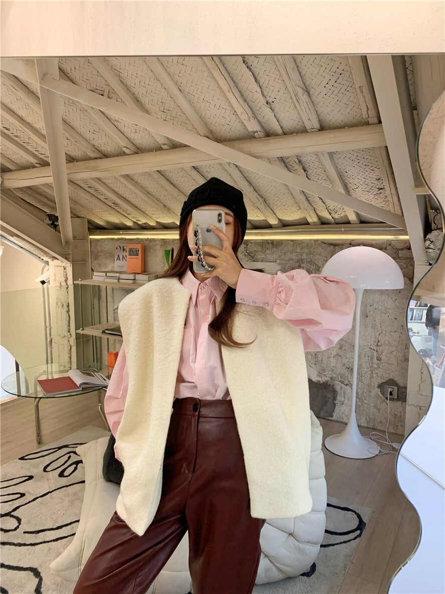 色:ピンクのシャツ570,ホワイトベスト571,赤い革のズボン569