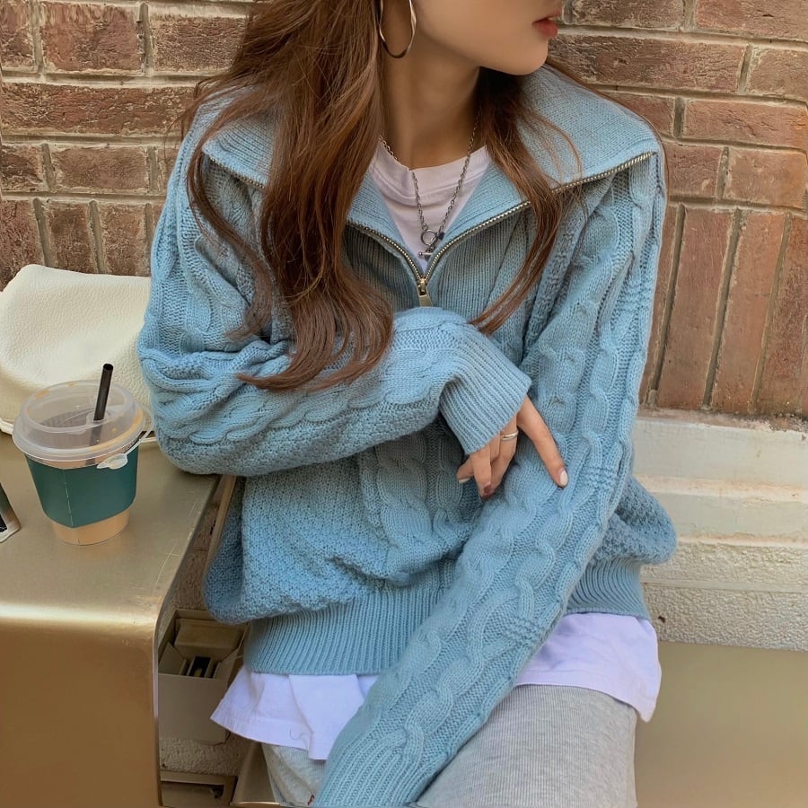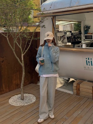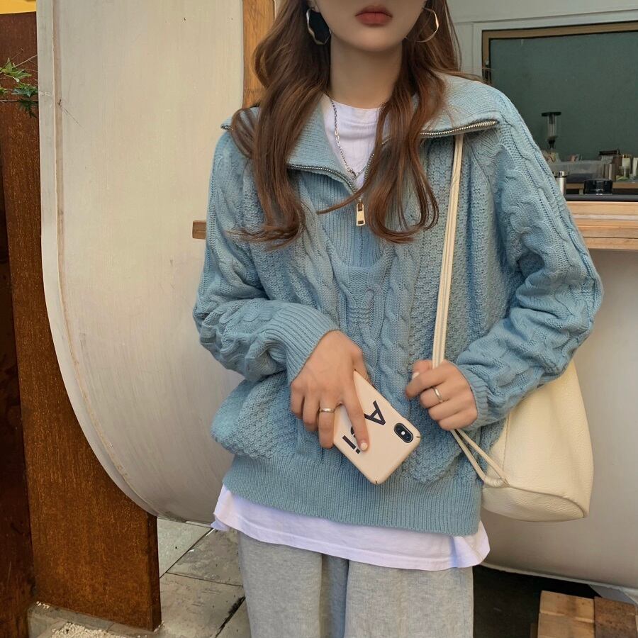 ヴィンテージブルーセーター レディーススプリングルーズニットトップス ロング 春物 ビンテージ kumikum16287655591