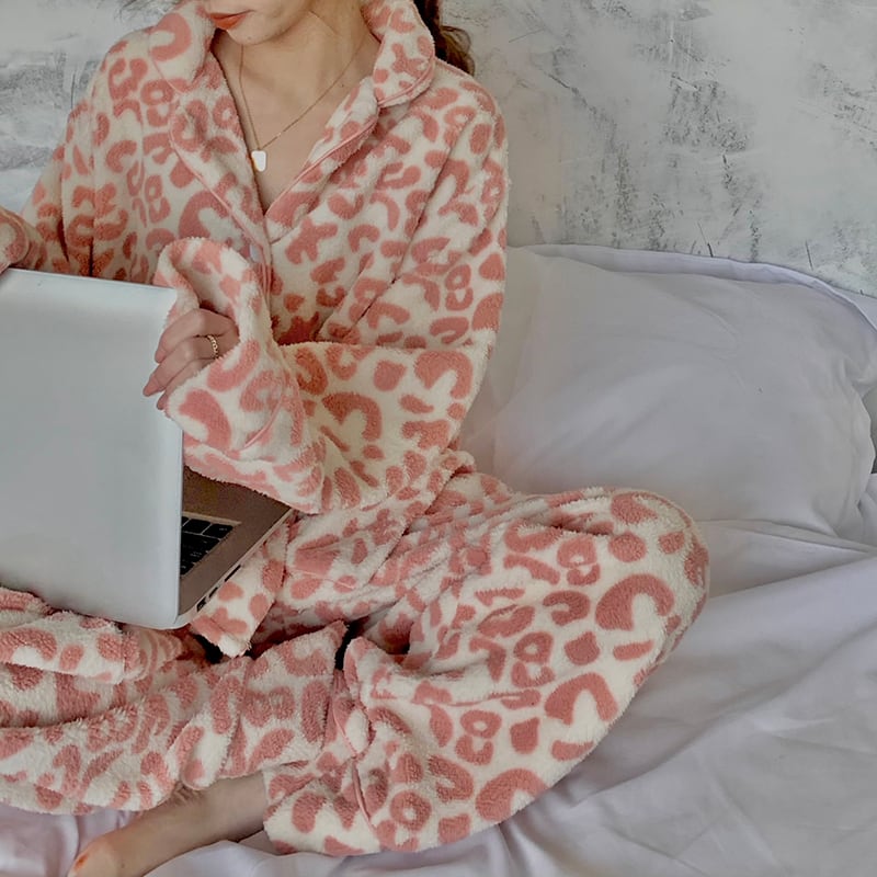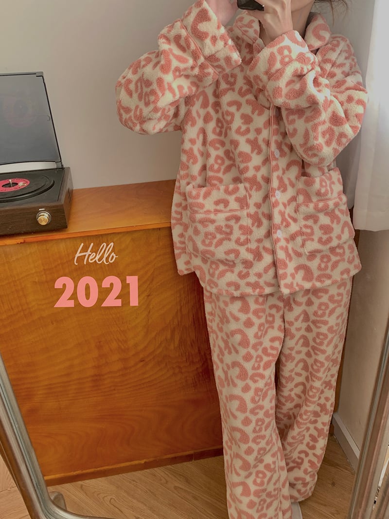 スプリングレオパードプリント柄カーディガンジャケット ファー ロング ピンク 春物 kumikum12049034308