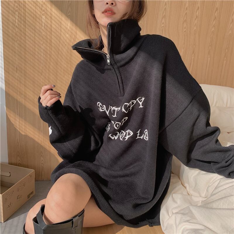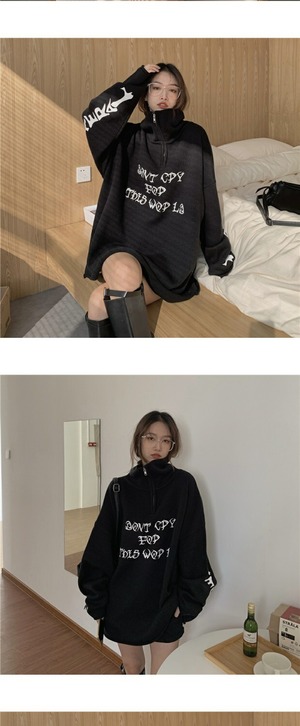 プリントジッパーセーター トップス レディースウィンタールーズ ロング 冬物 kumikum42748202883